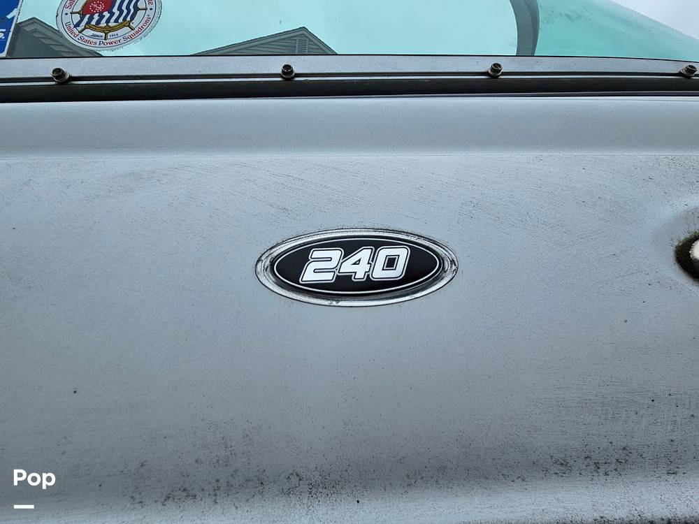 This 240 EX sport boat has a Fast-Tab hull design and an amazing boatload of features. Up front on the bow is a hidden stainless steel bow ladder topping the anchor locker, a drainable cooler and flush-fit closeout door that can close to divide the bow seating area from the helm.