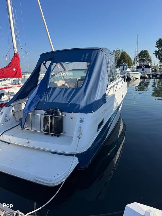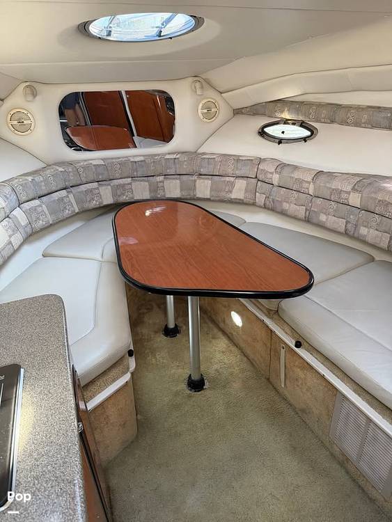The 2005 Crownline 290 CR is a well-crafted cruiser designed for comfort, performance, and style on the water. This vessel boasts a sleek, sporty profile with gracefully contoured lines and a modern hull design that enhances both aesthetics and efficiency. The extended swim platform at the stern provides an inviting space for watersports activities or easy boarding from the dock.