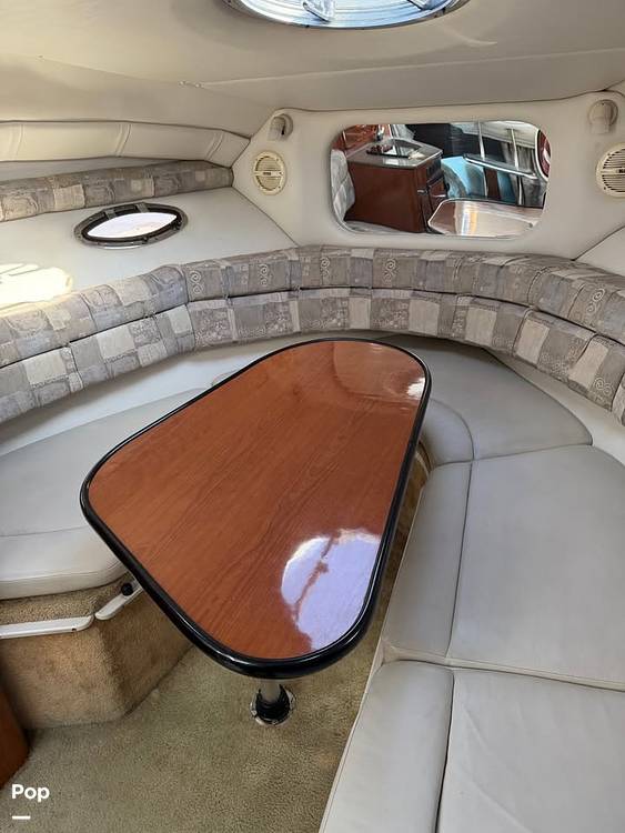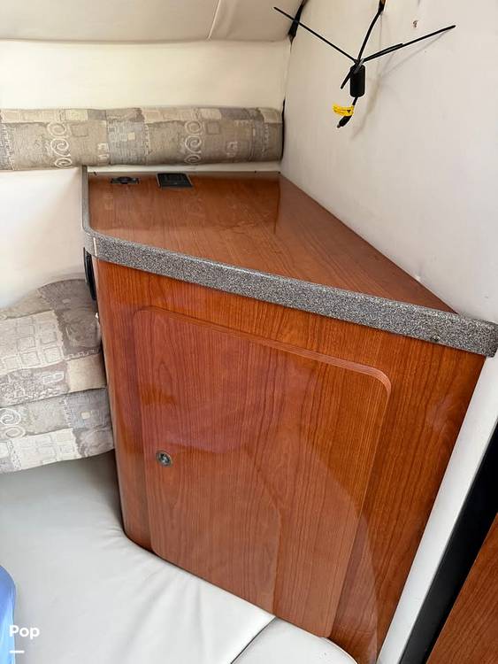 Stepping below deck, the cabin of the 290 CR is surprisingly roomy for a vessel of its size. It is equipped with a galley that includes a refrigerator, microwave, stove, and sink, as well as ample storage for provisions and cookware. The forward V-berth converts from a dining area into a comfortable sleeping space, and the mid-cabin berth offers additional accommodations for overnight stays. Plush upholstery, wood accents, and strategically placed lighting create a warm and inviting atmosphere throughout the living quarters.
