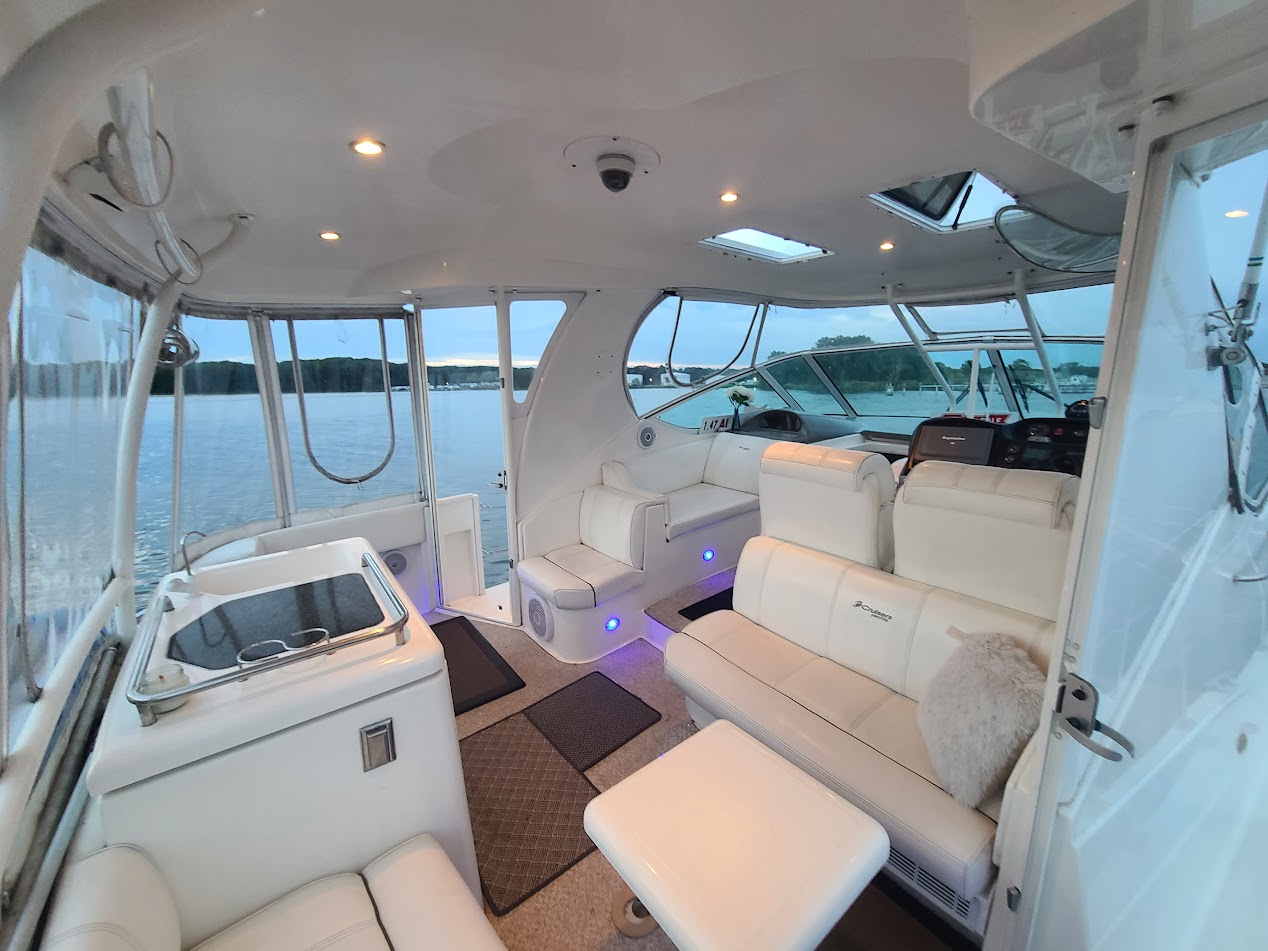 Call or Text 616-437-168seven for more information and a quicker response than email. Make: Cruisers Yachts Model: 405 Motor Yacht Year: 2005 Length: 39' 2" Beam: 13' 8" Draft: 3' 6" Weight: 31000 lbs Price: $234,000 Engine: Yanmar LYA-STP, YAN, DSL, 370HP, TW Inboard # of Engines 2 HP: 840.0 Drive: Inboard Hours: 400 Fuel Type: Diesel Description: FRESH WATER with LOW HOURS. FREE WINTER STORAGE this coming winter. Must see to appreciate! Boat is still in the water if you'd like to come see it and / or sea trial it. Call or Text 616-437-168seven for more information and a quicker response than email. She is powered by twin Yanmar Inboard engines that are unstoppable through the waters. It has a combination of everything you and your guests need to enjoy life on the water, whether it be fishing, diving, or just relaxing and enjoying your time on the water. This 39’ Cruisers 405 Motor Yacht can accommodate and pretty much cater to any of your needs. She is also accommodated with two spacious staterooms equipped with queen size berths, head and shower. The primary stateroom is equipped with separate rooms for head and shower. This boat is in excellent condition and is maintained year round. You and your guests will enjoy all of the interior and exterior lounging areas this boat has to offer. This 39’ Cruisers 405 Express motor yacht provides everything you need to ride with style and class. Here is your chance to get an enjoyably beautiful command bridge motor yacht at a Great Price. FULL SPECS Dimensions LOA: 39 ft 0 in Beam: 13 ft 8 in Maximum Draft: 3 ft 6 in Bridge Clearance: 16 ft 9 in Dry Weight: 33,000 lbs Engines Engine Brand: Yanmar Engine(s) Total Power: 840 HP Engine Model: 6LYA-STP Engine Type: Inboard Cruising Speed: 25 mph Maximum Speed: 30 mph Year Built: 2005 Engine Hours: 400 Tanks Fresh Water Tanks: (100 Gallons) Fuel Tanks: (380 Gallons) Holding Tanks: (80 Gallons) Engines and Mechanical Onan 9.5 kW Generator Side Power Bow Thruster Fuel Crossover System Reverso Oil Change System Dual 50 Amp Battery Charging Systems Automatic Fire Extinguisher System with Engine Shutoff 75' 240 VAC Shore Power Cord Glendinning Cord Retrieval System Reverse Cycle Heat and Air Conditioning 24,000 BTU Salon and VIP 12,000 BTU Master 16,000 BTU Cockpit Navigation and Electronics RayMarine Chart Plotter RayDome Radar Antenna RayMarine Autohelm Auto Pilot VHF Radio Faria Digital Depth Sounder Ritchie Compass Jabsco Remote Spotlight Side Power Bow Thruster Hydraulic Steering Bennett Trim Tabs KEY FEATURES Washer/Dryer Cockpit Air/Heat Integrated full station wagon effect associated with aft cabin boats. This design feature significantly minimizes exhaust, carbon monoxide and spray from coming back into the cockpit and makes for a safer & more enjoyable time on the water. Express-style cockpit layout. Cockpit wet bar with standard refrigerator/ice maker. Generous aft deck seating with two tables and storage. Spacious companion seating. Double helm seat with flip up bolster. Standard full fiberglass hardtop with wing doors. Full fiberglass cabin liners - forward and aft of engine compartment. Salon, dinette and galley are all on one convenient level with no steps. Abundant windows allow for excellent lighting. Visibility and ventilation. U-shaped galley with generous storage. Standard cherry interior with solid cherry dinette table. Forward stateroom offers large double berth. Queen-size Island berth with access from both sides featured in master stateroom. Private master head with large separate shower stall. STANDARD FEATURES Aft Cockpit Seat Anchor Roller: Mooring Bit & Cleat Anti-Fouling Bottom Paint Boarding Gate: Transom Bow Rail: Welded Stainless Steel Cabin Walk-Around Cockpit Carpeting Cockpit Shower Dockside Water Inlet Drink Holders Fender Storage Gunwale Molding: Stainless Steel Helm Captain Seat: Double Helm Companion Seat Ice Maker/Refrigerator: Cockpit Line Locker: Bow Swim Platform: w/ Boarding Ladder Table: Cockpit Wet Bar: Cockpit Windlass: (Includes Foredeck Foot Switch, Anchor, 30' of 5/16" Chain & 126' of 5/8" Line) Windshield: White Frame Accomodations The Cruisers 405 is a Two-Stateroom Two-Head design with a large salon and U-Shaped Galley. The Forward VIP Stateroom has a privacy bulkhead and door. Features here include an Island Queen Berth, separate Head and Shower compartments along with beautiful Cherry Cabinetry and Hanging Lockers. The Forward Head also serves the Salon and has a privacy entrance door from the VIP. The Primary Aft Stateroom is quite spacious, is centered around an Island Queen Berth and is appointed with the same Cherry Cabinetry including ample storage and a large Hanging Locker. The Primary Head is to starboard and features a private Stall Shower and tile flooring. The Salon and Galley areas are quite comfortable. An L-Shaped Flexsteel Sofa with Incliners is to port, a large Booth Shaped Dinette is to starboard. The Galley is also to starboard, aft of the Dinette. The Salon, Dinette, and Galley are all on one convenient level, no steps! Forward VIP Cabin Island Queen Berth Privacy Bulkhead and Door - Cherry Privacy Head Entrance Vacu-Flush Head System Large Separate Shower Closet Full Fiberglass Cabin Liner Cherry Veneer Interior 15" TV with DVD Primary Aft Cabin Island Queen Berth Privacy Door - Cherry Cedar Lined Hanging Locker Full Fiberglass Cabin Liner Cherry Veneer Interior Large Hanging Locker Private Head Vacu-Flush Head System Private Stall Shower Washer-Dryer Combo Unit 15" TV with DVD Decks and Exterior Integrated Full Width Swim Platform with Drained Storage Fiberglass Platform Stowage Box Molded Fiberglass Steps to Aft Deck Hot and Cold Transom Shower Cockpit Wet Bar with Refrigerator and Ice Maker Forward and Aft Facing Aft Deck Seating with Dual Fiberglass Tables Portside Lounge Seating Dual Helm Seating with Flip-up Bolster Full Fiberglass Hardtop with Wing Doors Opening Hardtop Skylights 16,000 BTU Cockpit / Bridge Heating and A