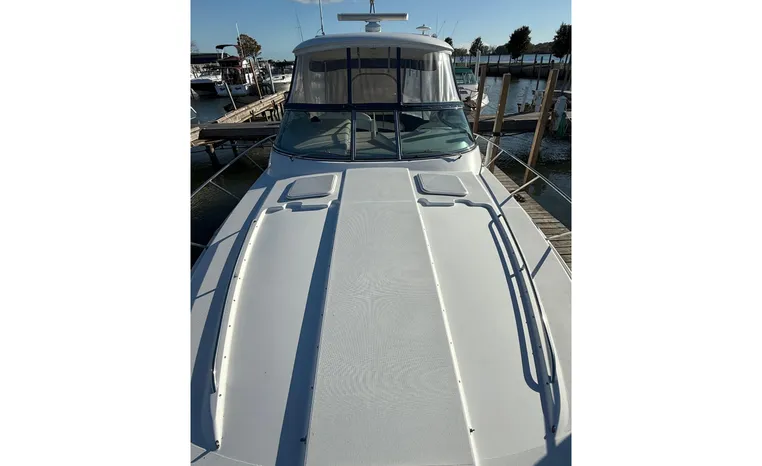 Freash water since new, this vessel features Twin MerCrusier 496 HO (High-Output) Gas Engine's (w/Mercury SmartCraft Digital Display) with Bravo III Sterndrives and only 620 original hours! Notable features include but are not limited to the following: Air-Conditioning & Heat, Head (Vacuflush) w/Vanity/Sink/Stall-Shower, Custom Hardwood Flooring, Central Vacuum System, Kohler 7.3kw Generator (143-Hours), Bow-Thruster, Windlass Anchor w/Forward Controls, Cockpit Wet Bar w/Sink/Fridge, Raymarine E80 (Color) Radar w/GPS/Chartplotter, Premium Sound System w/iPod/MP3-Connection, Canvas Package (Cockpit Enclosure), Snap-in Snap-out Cockpit Carpeting, and MUCH more!