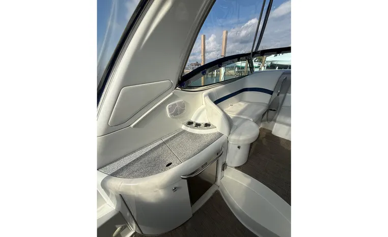 Freash water since new, this vessel features Twin MerCrusier 496 HO (High-Output) Gas Engine's (w/Mercury SmartCraft Digital Display) with Bravo III Sterndrives and only 620 original hours! Notable features include but are not limited to the following: Air-Conditioning & Heat, Head (Vacuflush) w/Vanity/Sink/Stall-Shower, Custom Hardwood Flooring, Central Vacuum System, Kohler 7.3kw Generator (143-Hours), Bow-Thruster, Windlass Anchor w/Forward Controls, Cockpit Wet Bar w/Sink/Fridge, Raymarine E80 (Color) Radar w/GPS/Chartplotter, Premium Sound System w/iPod/MP3-Connection, Canvas Package (Cockpit Enclosure), Snap-in Snap-out Cockpit Carpeting, and MUCH more!