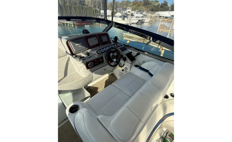 Freash water since new, this vessel features Twin MerCrusier 496 HO (High-Output) Gas Engine's (w/Mercury SmartCraft Digital Display) with Bravo III Sterndrives and only 620 original hours! Notable features include but are not limited to the following: Air-Conditioning & Heat, Head (Vacuflush) w/Vanity/Sink/Stall-Shower, Custom Hardwood Flooring, Central Vacuum System, Kohler 7.3kw Generator (143-Hours), Bow-Thruster, Windlass Anchor w/Forward Controls, Cockpit Wet Bar w/Sink/Fridge, Raymarine E80 (Color) Radar w/GPS/Chartplotter, Premium Sound System w/iPod/MP3-Connection, Canvas Package (Cockpit Enclosure), Snap-in Snap-out Cockpit Carpeting, and MUCH more!