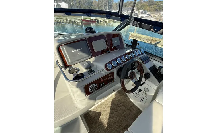 Freash water since new, this vessel features Twin MerCrusier 496 HO (High-Output) Gas Engine's (w/Mercury SmartCraft Digital Display) with Bravo III Sterndrives and only 620 original hours! Notable features include but are not limited to the following: Air-Conditioning & Heat, Head (Vacuflush) w/Vanity/Sink/Stall-Shower, Custom Hardwood Flooring, Central Vacuum System, Kohler 7.3kw Generator (143-Hours), Bow-Thruster, Windlass Anchor w/Forward Controls, Cockpit Wet Bar w/Sink/Fridge, Raymarine E80 (Color) Radar w/GPS/Chartplotter, Premium Sound System w/iPod/MP3-Connection, Canvas Package (Cockpit Enclosure), Snap-in Snap-out Cockpit Carpeting, and MUCH more!