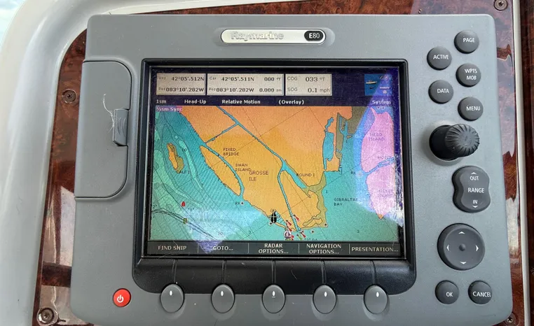 Freash water since new, this vessel features Twin MerCrusier 496 HO (High-Output) Gas Engine's (w/Mercury SmartCraft Digital Display) with Bravo III Sterndrives and only 620 original hours! Notable features include but are not limited to the following: Air-Conditioning & Heat, Head (Vacuflush) w/Vanity/Sink/Stall-Shower, Custom Hardwood Flooring, Central Vacuum System, Kohler 7.3kw Generator (143-Hours), Bow-Thruster, Windlass Anchor w/Forward Controls, Cockpit Wet Bar w/Sink/Fridge, Raymarine E80 (Color) Radar w/GPS/Chartplotter, Premium Sound System w/iPod/MP3-Connection, Canvas Package (Cockpit Enclosure), Snap-in Snap-out Cockpit Carpeting, and MUCH more!
