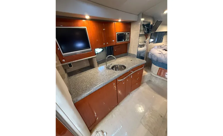 Freash water since new, this vessel features Twin MerCrusier 496 HO (High-Output) Gas Engine's (w/Mercury SmartCraft Digital Display) with Bravo III Sterndrives and only 620 original hours! Notable features include but are not limited to the following: Air-Conditioning & Heat, Head (Vacuflush) w/Vanity/Sink/Stall-Shower, Custom Hardwood Flooring, Central Vacuum System, Kohler 7.3kw Generator (143-Hours), Bow-Thruster, Windlass Anchor w/Forward Controls, Cockpit Wet Bar w/Sink/Fridge, Raymarine E80 (Color) Radar w/GPS/Chartplotter, Premium Sound System w/iPod/MP3-Connection, Canvas Package (Cockpit Enclosure), Snap-in Snap-out Cockpit Carpeting, and MUCH more!