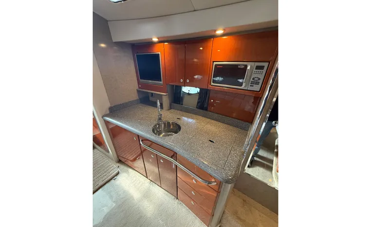 Freash water since new, this vessel features Twin MerCrusier 496 HO (High-Output) Gas Engine's (w/Mercury SmartCraft Digital Display) with Bravo III Sterndrives and only 620 original hours! Notable features include but are not limited to the following: Air-Conditioning & Heat, Head (Vacuflush) w/Vanity/Sink/Stall-Shower, Custom Hardwood Flooring, Central Vacuum System, Kohler 7.3kw Generator (143-Hours), Bow-Thruster, Windlass Anchor w/Forward Controls, Cockpit Wet Bar w/Sink/Fridge, Raymarine E80 (Color) Radar w/GPS/Chartplotter, Premium Sound System w/iPod/MP3-Connection, Canvas Package (Cockpit Enclosure), Snap-in Snap-out Cockpit Carpeting, and MUCH more!