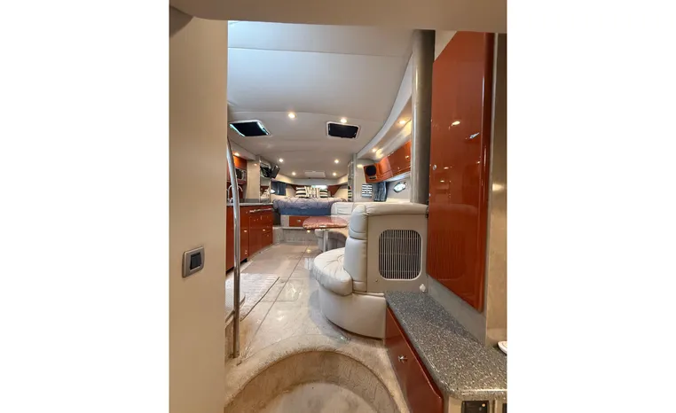 Freash water since new, this vessel features Twin MerCrusier 496 HO (High-Output) Gas Engine's (w/Mercury SmartCraft Digital Display) with Bravo III Sterndrives and only 620 original hours! Notable features include but are not limited to the following: Air-Conditioning & Heat, Head (Vacuflush) w/Vanity/Sink/Stall-Shower, Custom Hardwood Flooring, Central Vacuum System, Kohler 7.3kw Generator (143-Hours), Bow-Thruster, Windlass Anchor w/Forward Controls, Cockpit Wet Bar w/Sink/Fridge, Raymarine E80 (Color) Radar w/GPS/Chartplotter, Premium Sound System w/iPod/MP3-Connection, Canvas Package (Cockpit Enclosure), Snap-in Snap-out Cockpit Carpeting, and MUCH more!