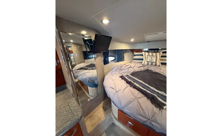 Freash water since new, this vessel features Twin MerCrusier 496 HO (High-Output) Gas Engine's (w/Mercury SmartCraft Digital Display) with Bravo III Sterndrives and only 620 original hours! Notable features include but are not limited to the following: Air-Conditioning & Heat, Head (Vacuflush) w/Vanity/Sink/Stall-Shower, Custom Hardwood Flooring, Central Vacuum System, Kohler 7.3kw Generator (143-Hours), Bow-Thruster, Windlass Anchor w/Forward Controls, Cockpit Wet Bar w/Sink/Fridge, Raymarine E80 (Color) Radar w/GPS/Chartplotter, Premium Sound System w/iPod/MP3-Connection, Canvas Package (Cockpit Enclosure), Snap-in Snap-out Cockpit Carpeting, and MUCH more!