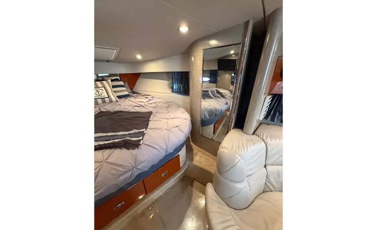 Freash water since new, this vessel features Twin MerCrusier 496 HO (High-Output) Gas Engine's (w/Mercury SmartCraft Digital Display) with Bravo III Sterndrives and only 620 original hours! Notable features include but are not limited to the following: Air-Conditioning & Heat, Head (Vacuflush) w/Vanity/Sink/Stall-Shower, Custom Hardwood Flooring, Central Vacuum System, Kohler 7.3kw Generator (143-Hours), Bow-Thruster, Windlass Anchor w/Forward Controls, Cockpit Wet Bar w/Sink/Fridge, Raymarine E80 (Color) Radar w/GPS/Chartplotter, Premium Sound System w/iPod/MP3-Connection, Canvas Package (Cockpit Enclosure), Snap-in Snap-out Cockpit Carpeting, and MUCH more!