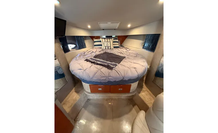 Freash water since new, this vessel features Twin MerCrusier 496 HO (High-Output) Gas Engine's (w/Mercury SmartCraft Digital Display) with Bravo III Sterndrives and only 620 original hours! Notable features include but are not limited to the following: Air-Conditioning & Heat, Head (Vacuflush) w/Vanity/Sink/Stall-Shower, Custom Hardwood Flooring, Central Vacuum System, Kohler 7.3kw Generator (143-Hours), Bow-Thruster, Windlass Anchor w/Forward Controls, Cockpit Wet Bar w/Sink/Fridge, Raymarine E80 (Color) Radar w/GPS/Chartplotter, Premium Sound System w/iPod/MP3-Connection, Canvas Package (Cockpit Enclosure), Snap-in Snap-out Cockpit Carpeting, and MUCH more!