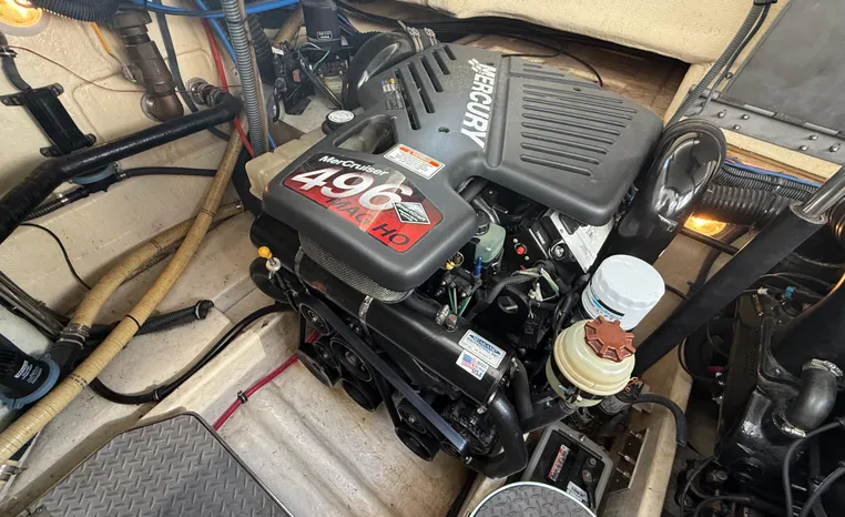 Freash water since new, this vessel features Twin MerCrusier 496 HO (High-Output) Gas Engine's (w/Mercury SmartCraft Digital Display) with Bravo III Sterndrives and only 620 original hours! Notable features include but are not limited to the following: Air-Conditioning & Heat, Head (Vacuflush) w/Vanity/Sink/Stall-Shower, Custom Hardwood Flooring, Central Vacuum System, Kohler 7.3kw Generator (143-Hours), Bow-Thruster, Windlass Anchor w/Forward Controls, Cockpit Wet Bar w/Sink/Fridge, Raymarine E80 (Color) Radar w/GPS/Chartplotter, Premium Sound System w/iPod/MP3-Connection, Canvas Package (Cockpit Enclosure), Snap-in Snap-out Cockpit Carpeting, and MUCH more!
