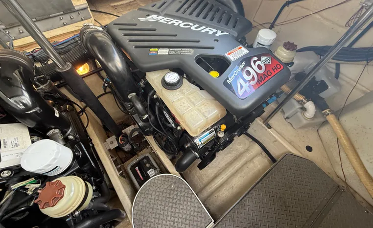 Freash water since new, this vessel features Twin MerCrusier 496 HO (High-Output) Gas Engine's (w/Mercury SmartCraft Digital Display) with Bravo III Sterndrives and only 620 original hours! Notable features include but are not limited to the following: Air-Conditioning & Heat, Head (Vacuflush) w/Vanity/Sink/Stall-Shower, Custom Hardwood Flooring, Central Vacuum System, Kohler 7.3kw Generator (143-Hours), Bow-Thruster, Windlass Anchor w/Forward Controls, Cockpit Wet Bar w/Sink/Fridge, Raymarine E80 (Color) Radar w/GPS/Chartplotter, Premium Sound System w/iPod/MP3-Connection, Canvas Package (Cockpit Enclosure), Snap-in Snap-out Cockpit Carpeting, and MUCH more!