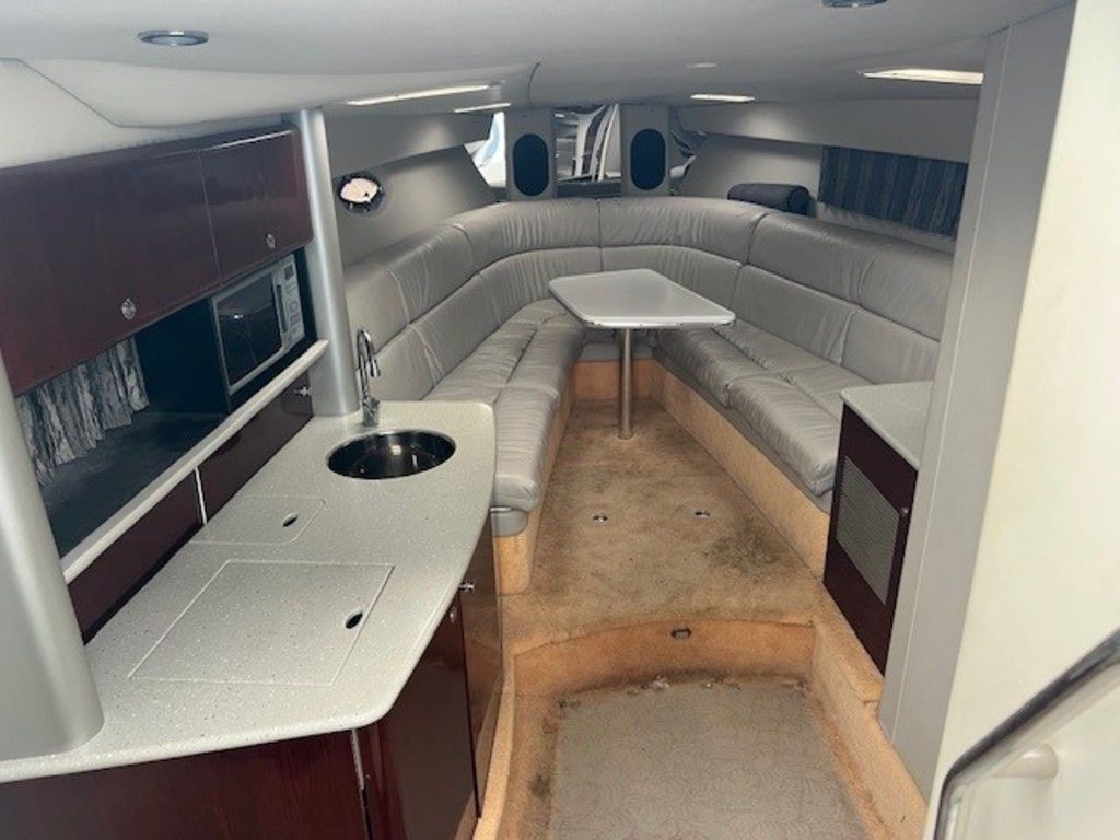 The cockpit of the 2005 Formula 370 SS is designed for comfort and convenience. The open layout features U-shaped seating with premium marine-grade upholstery, which is both durable and easy to maintain. A removable table allows for casual dining or can be stowed away to create additional lounging space. Beneath the seats, ample storage compartments keep the deck clutter-free.