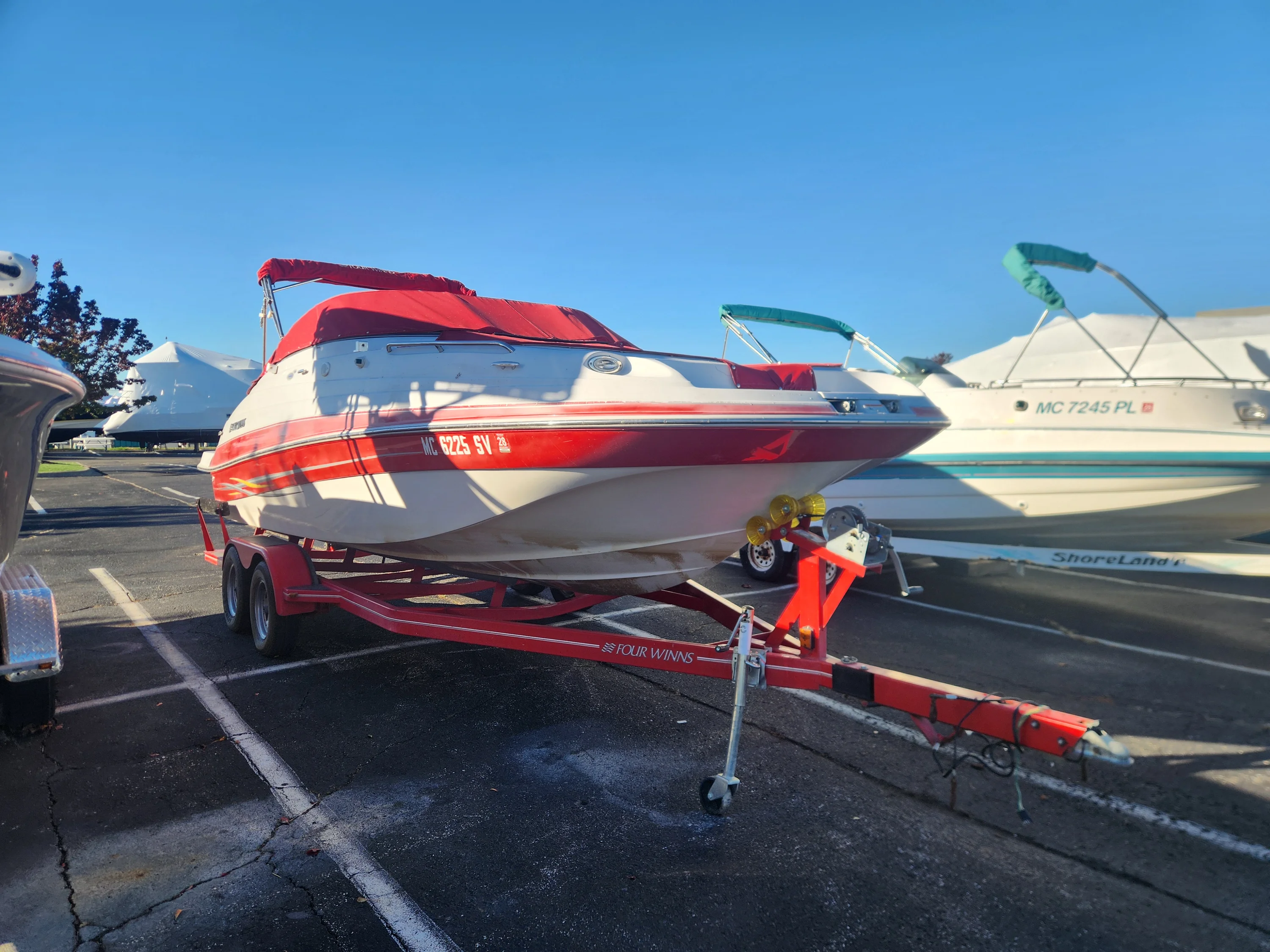 Turn heads and make waves with this 2005 Four Winns 214 Funship—a perfect blend of sporty performance and family-friendly fun. Known for its solid build quality and smooth ride, this 21-foot deck boat offers generous seating, an open bow layout, and the versatility to handle everything from relaxed cruising to tubing and watersports. The deep cockpit, wide beam, and thoughtful storage make it ideal for entertaining, while Four Winns’ signature craftsmanship ensures comfort and confidence on the water. Whether you’re chasing sunsets or summer memories, the 214 Funship delivers big-boat enjoyment in an easy-to-own package. -5.0 Volvo Duo-Prop-Ski Tow Ring-Cover-Trailer Included