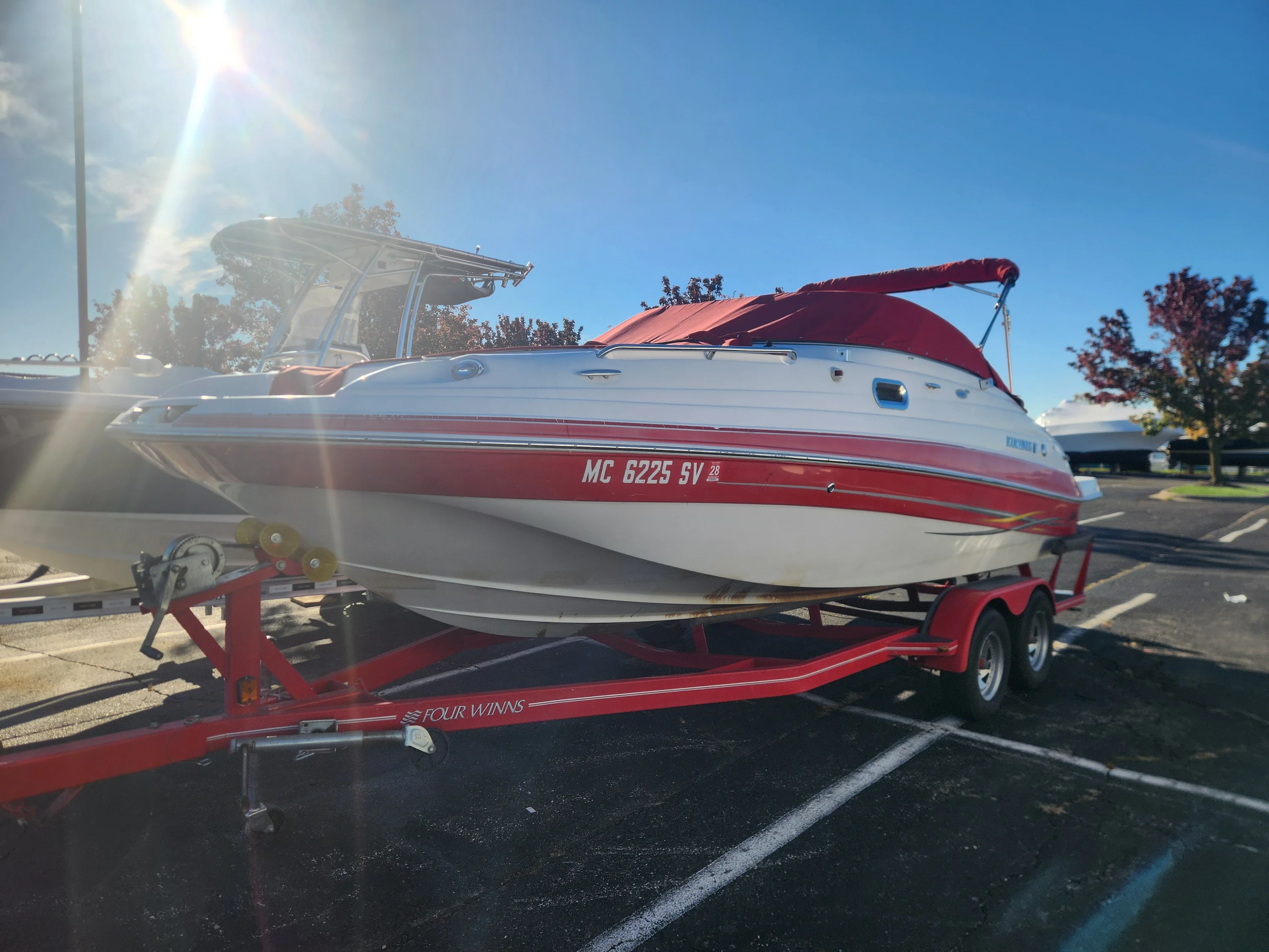 Turn heads and make waves with this 2005 Four Winns 214 Funship—a perfect blend of sporty performance and family-friendly fun. Known for its solid build quality and smooth ride, this 21-foot deck boat offers generous seating, an open bow layout, and the versatility to handle everything from relaxed cruising to tubing and watersports. The deep cockpit, wide beam, and thoughtful storage make it ideal for entertaining, while Four Winns’ signature craftsmanship ensures comfort and confidence on the water. Whether you’re chasing sunsets or summer memories, the 214 Funship delivers big-boat enjoyment in an easy-to-own package. -5.0 Volvo Duo-Prop-Ski Tow Ring-Cover-Trailer Included