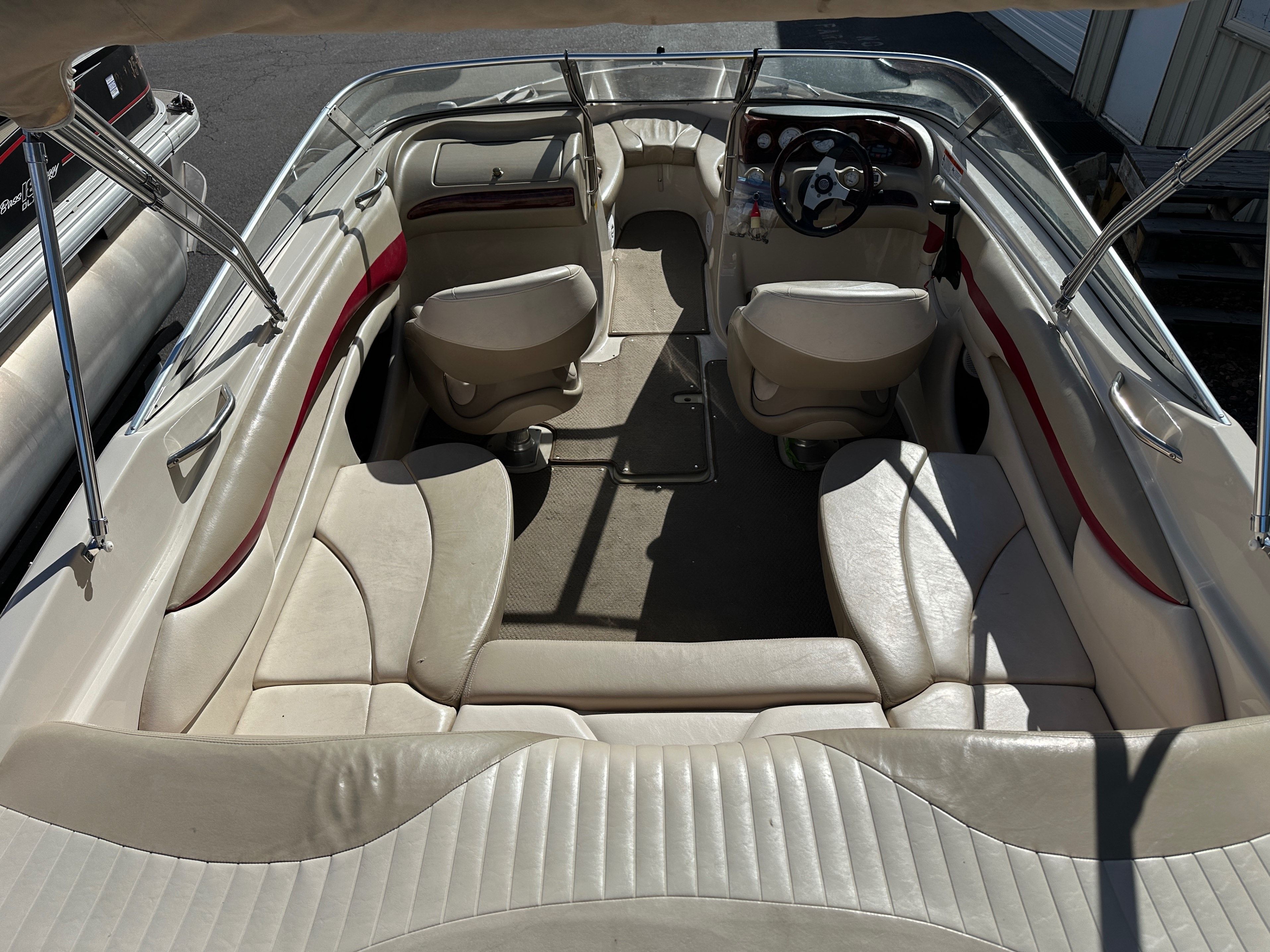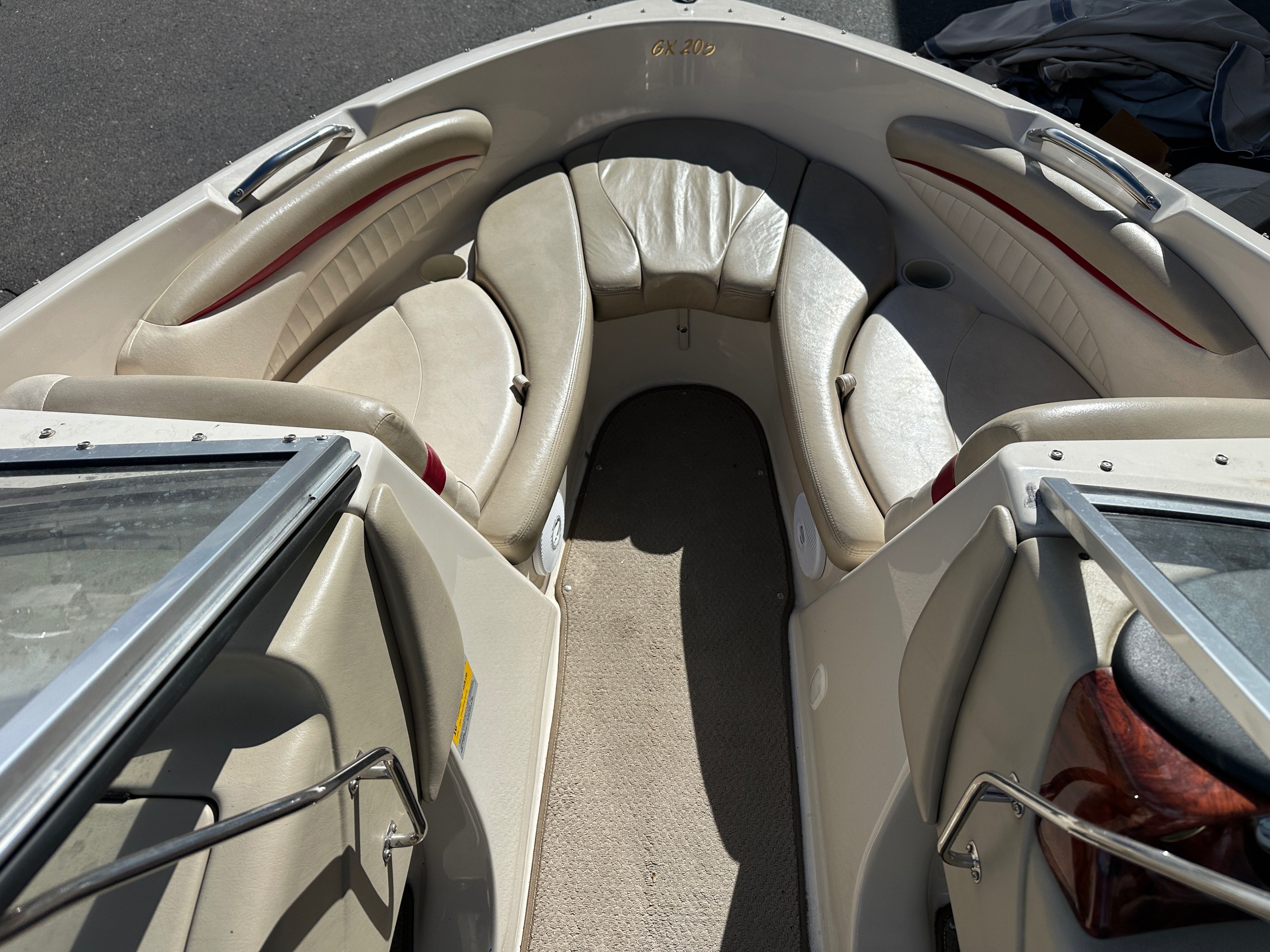2005 Glastron 205 Boat Description The 2005 Glastron 205 is a prime piece of nautical engineering that nestles snugly within the illustrious history and legacy of boat manufacturing that Glastron boats have come to represent over the years. Design and Specifications: With its sleek, stylish design, the 20-foot length provides ample space for up to 8 passengers. The Glastron 205 boasts a sterndrive power system, a practical layout, and a walk-through windshield for easy access to the bow seating area. Performance: With a nimble, energetic performance, the Glastron 205 is powered by a potent 220 hp Volvo Penta engine. It offers an excellent balance between speed, stability, and maneuverability. Comfort and Convenience: Onboard, there's a myriad of comfort features including deluxe bucket seats, a large sun pad, and in-floor ski locker. There are also deep-reaching storage spaces and an integrated swim platform, ideal for watersports or just lounging on the lake. Safety: As with all Glastron boats, safety is paramount. The 205 features non-slip flooring, navigation lights, a safety lanyard, and it's built with VEC technology for added structural integrity and durability. Additional Features: Other outstanding features include a CD sound system complemented with water-resistant speakers, bow lounges with storage underneath, drink holders, and a built-in cooler to enhance your boating experience. In summary, the 2005 Glastron 205 harmoniously blends style, performance, and comfort making it a fantastic choice for anybody looking for a family-friendly sport boat. With its many features and reliable performance, it's ready to give you an unforgettable day on the water.
