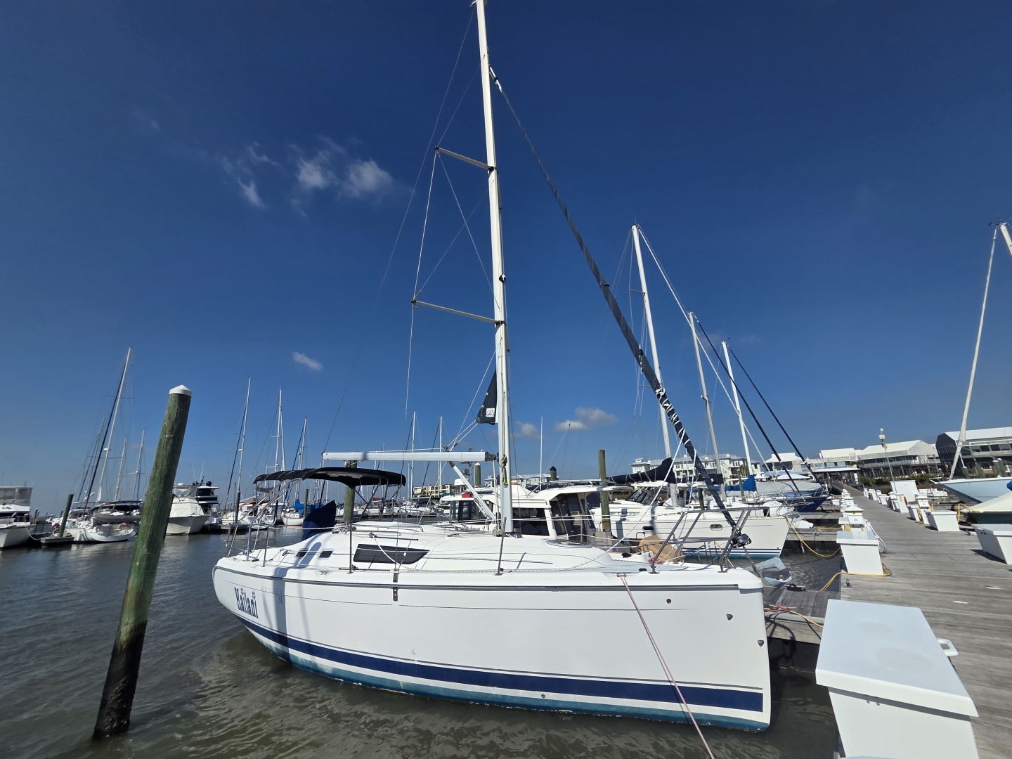 Previously operating as a business for captain-led day sailing trips, she could be returned to similar service or enjoyed as a private cruiser. She is currently usable as-is, with room for improvement.The Hunter 31-2 (referred to as the Hunter 31) is a 31-foot fractional sloop designed by Glenn Henderson for coastal cruising. She features an 11.08 ft beam, a 3.92 ft shoal draft, and solid headroom at just over 6ft. The B&R rig (no backstay) provides stability and ease of handling, while the design emphasizes cockpit space and interior volume.Rigged as a fractional sloop, she is equipped with an in-mast furling Doyle mainsail and a 110% roller furling genoa, allowing for convenient sail handling from the cockpit. Design features include a fixed fin keel with weighted bulb, spade-type rudder, and a walk-through reverse transom with integrated swim platform for easy boarding/swimming. A Bimini top (only two years old) provides shade, the folding helm increases usable cockpit space, the two stern rail seats add seating and the cockpit cushions provide extra comfort, making the cockpit area well-suited for enjoyable days out sailing, whether solo or with guests.Electronics include a Raymarine Axiom chartplotter (new), Icom HM-195 VHF, and an ACR ResQLink Personal Locator Beacon (PLB).Auxiliary power is provided by a Yanmar 3YM20 21hp diesel engine.Interior Layout (2 cabin, 1 head):Forward V-berth cabinAft double cabin (cushions needed)Salon with navigation desk and settee to port and L-shaped seating and table to stbGalley with single stainless steel sink and icebox (stove not currently installed)Enclosed wet head with showerFeatures:Sails (servicable)Standing rigging age 2005 - running rigging partially replaced 2024Yanmar hours ~1155Batteries new in 2024 (3) 12V total - (2) house (1) startElectric WindlassClaw anchor with ~25’ of 3/4” chain and ~ 75’ of 3/4” rodeTV and stereo Potential business opportunity: Previously operated as a captain-led day sailing vessel (uninspected up to 6 passengers)Usable in current condition, with room for improvement depending on intended useKnown / Expected Items to Address:A/C not working (possible control board issue)Shaft, propeller, and bearings could be replaced (seller has replacements available)Transducer needs to be coupled to Raymarine chartplotter (seller has part)Bottom paint due in the near termBeing sold as-is.Specifications:Hull Length: 30.39 ftBeam: 11.08 ftDraft (shoal keel): 3.92 ftHull speed: 7knHead room: 6.33 ftMast Height: 44.08 ftFuel Capacity: 20 gallonsWater Capacity: 50 gallonsHolding Tank: 20 gallons
