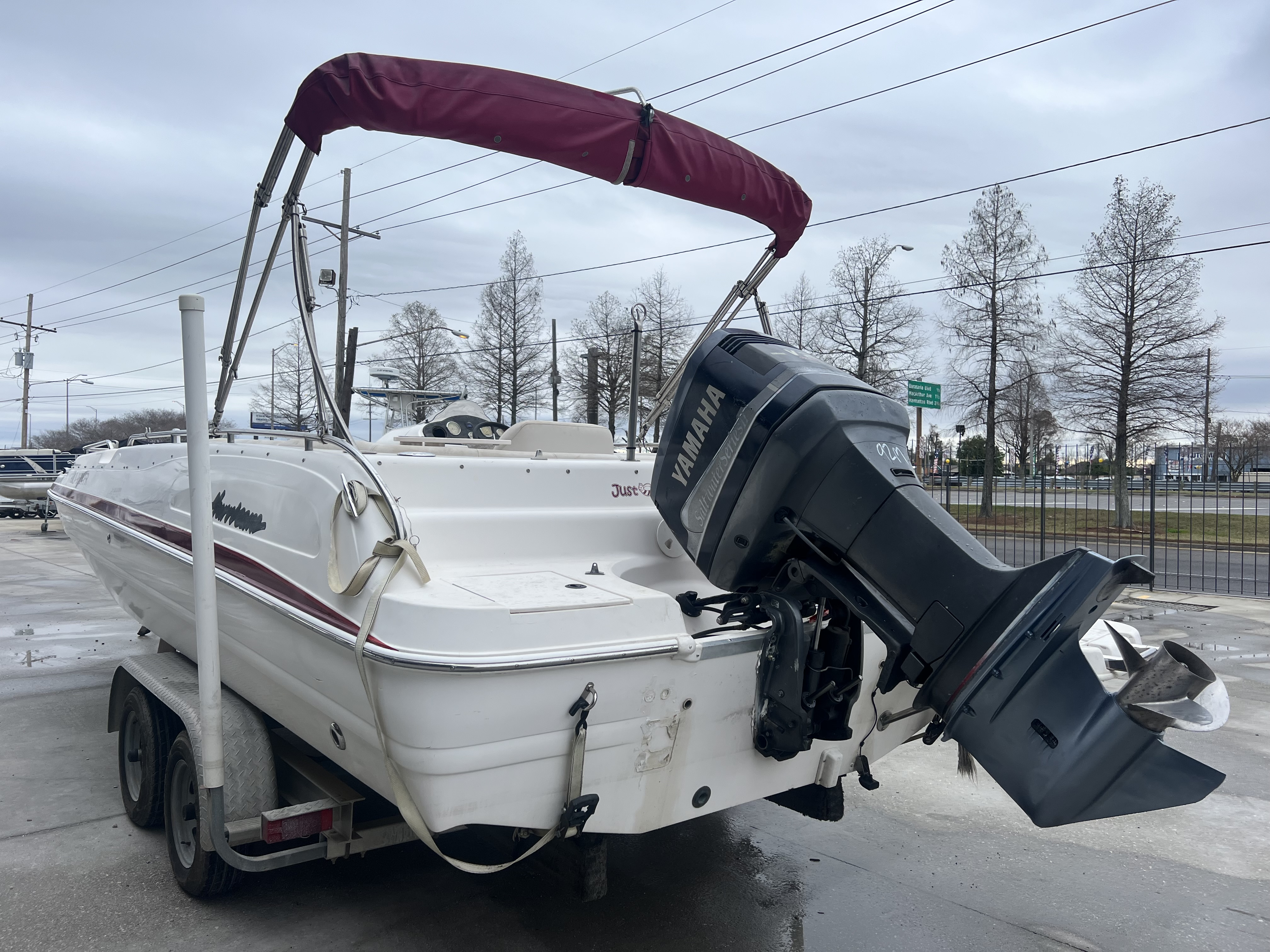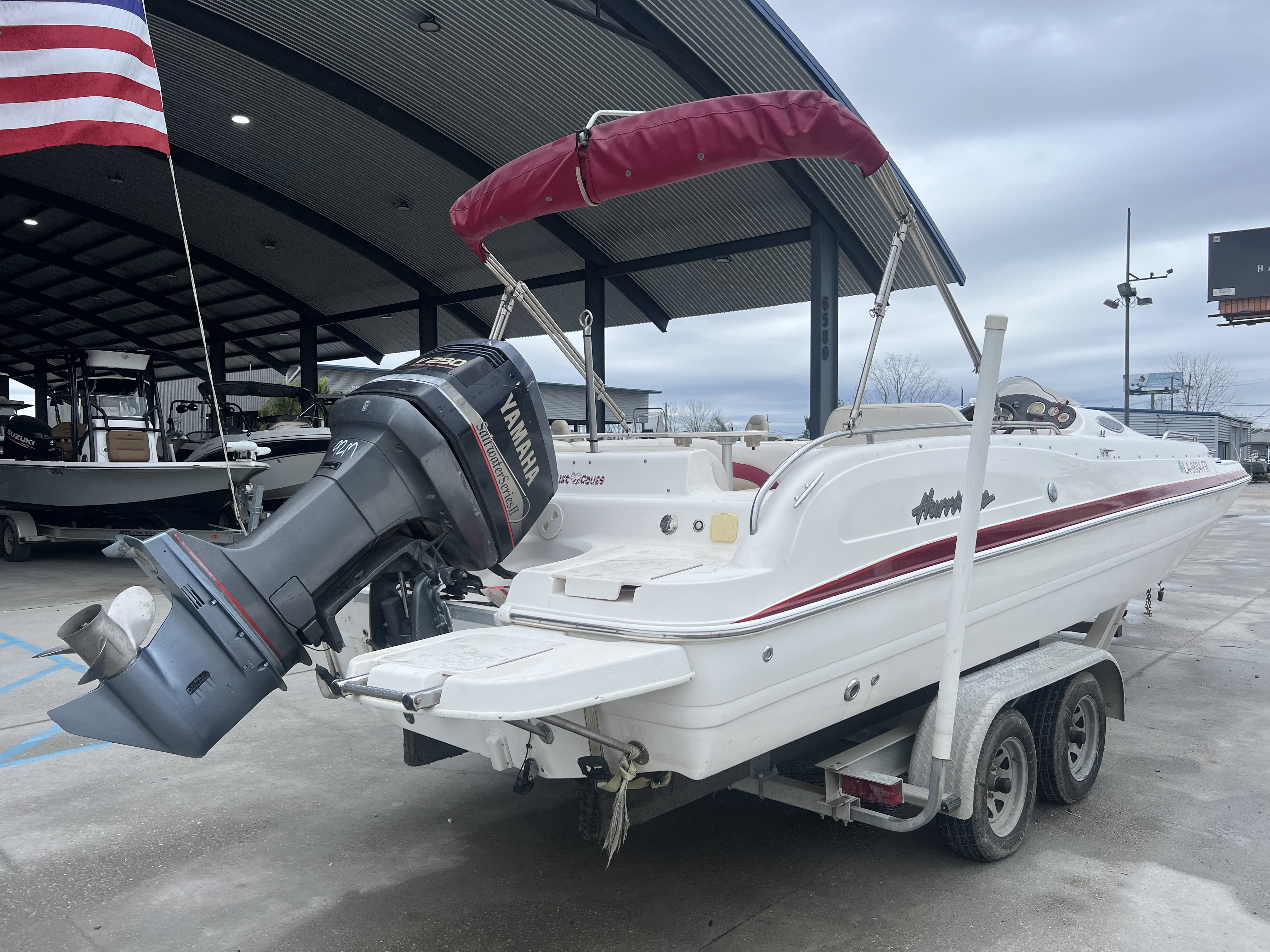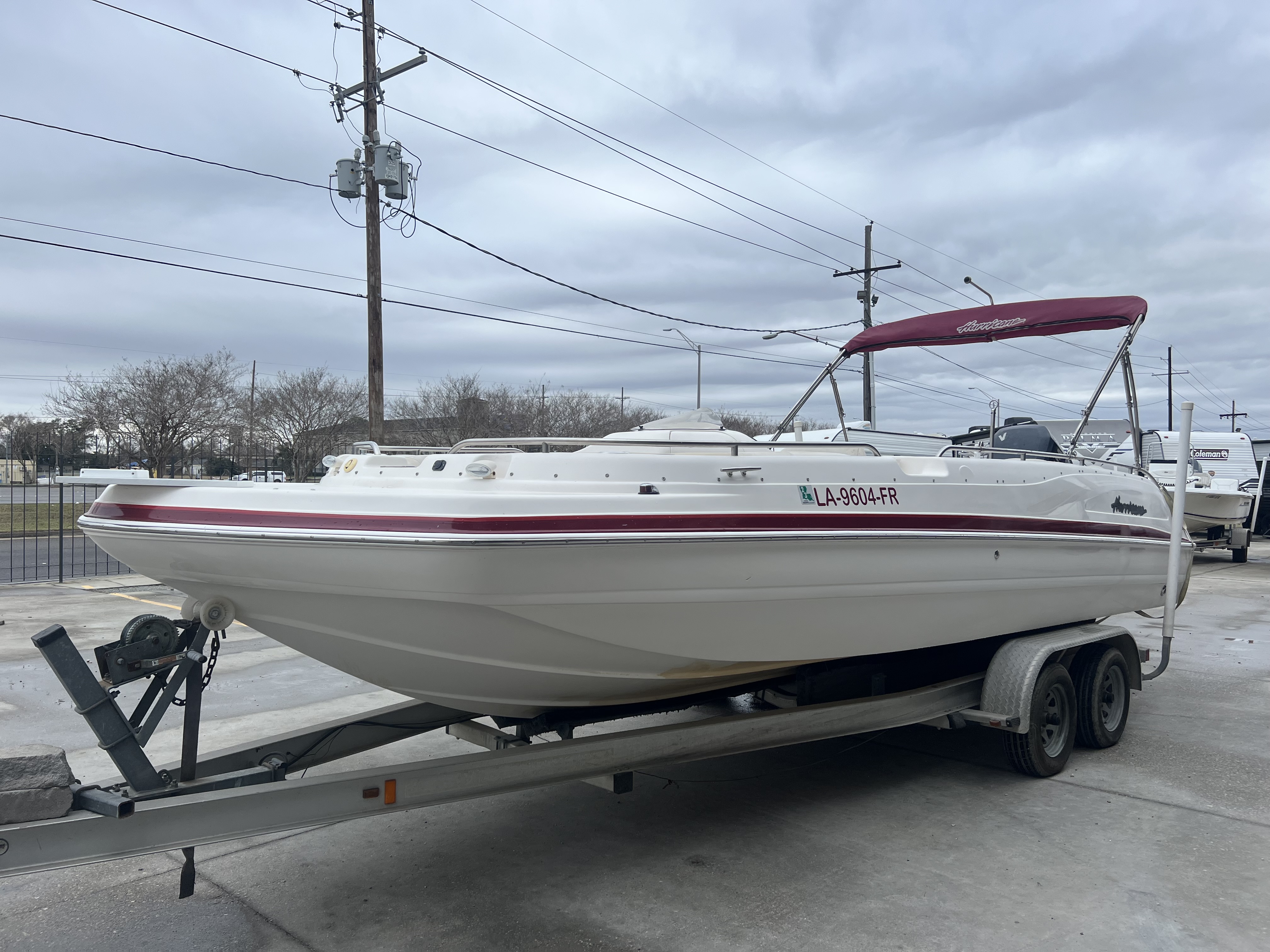 2005 Hurricane SunDeck 237 is a luxurious deckboat that offers styling, amenities, and performance to please the most discriminating buyer. Key features include a large entertainment center with sink, cup holders, 17-gallon fresh water system, and storage; an optional bow sunlounge cushion; an enclosed head that offers additional storage space and a convenient place to change clothes; plus a standard stern bumper holder bracket.