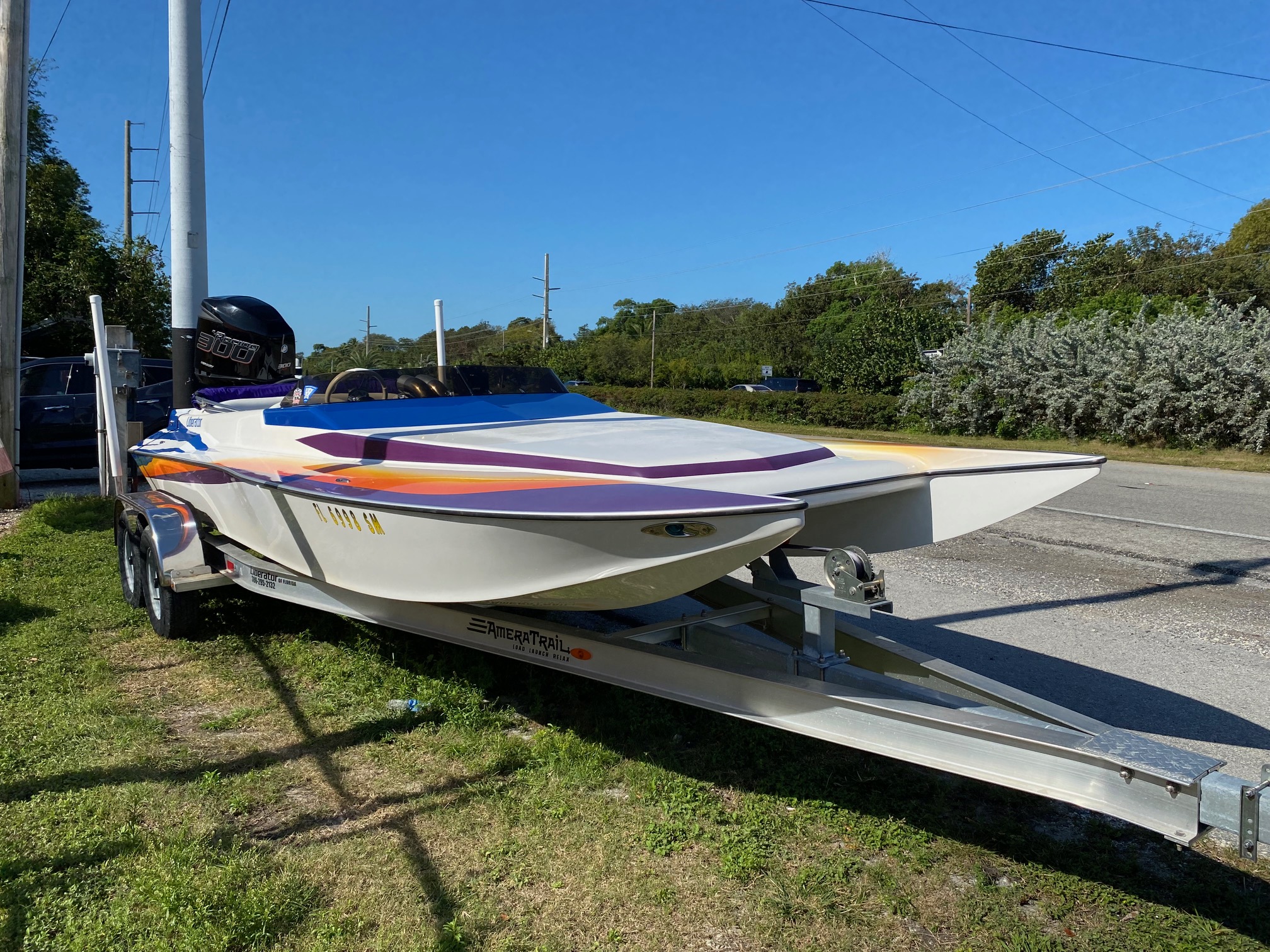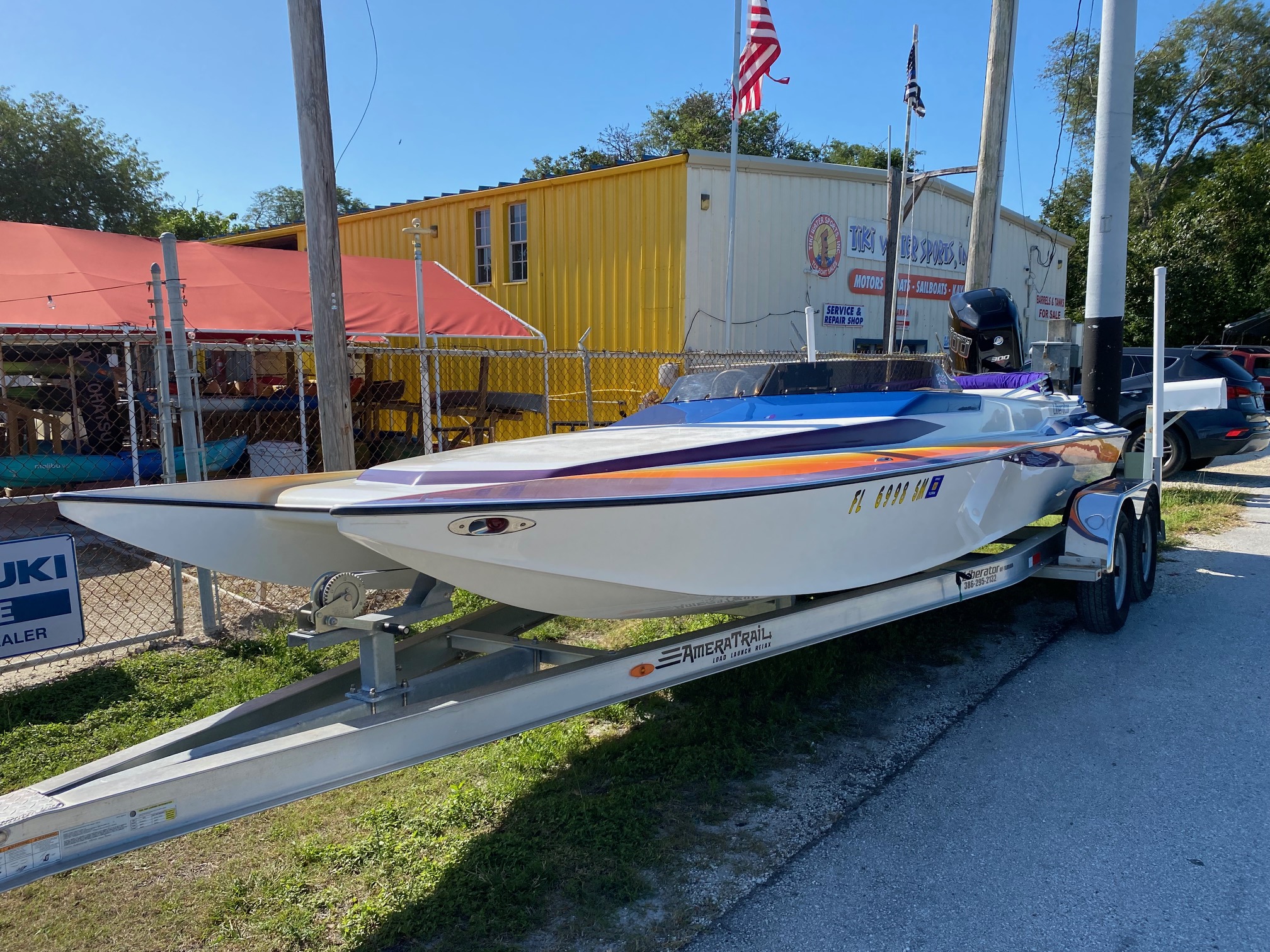Sits on 2020 Ameritrail tandem trailer. Engine was redone by Liberator Florida in 2020 and has a new transom and SportsMaster lower unit.