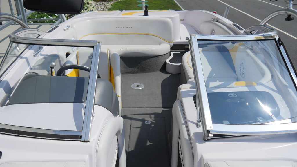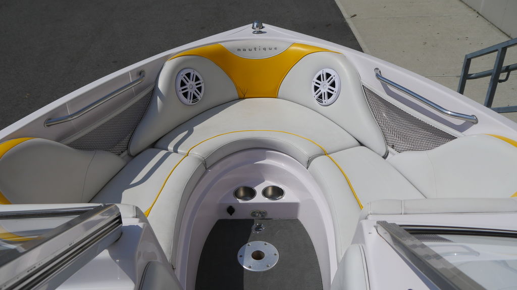 The gel coat is all around in good condition with New Nautique badges. The interior is in nice shape, show only some minors signs of wear on a few of the seats.