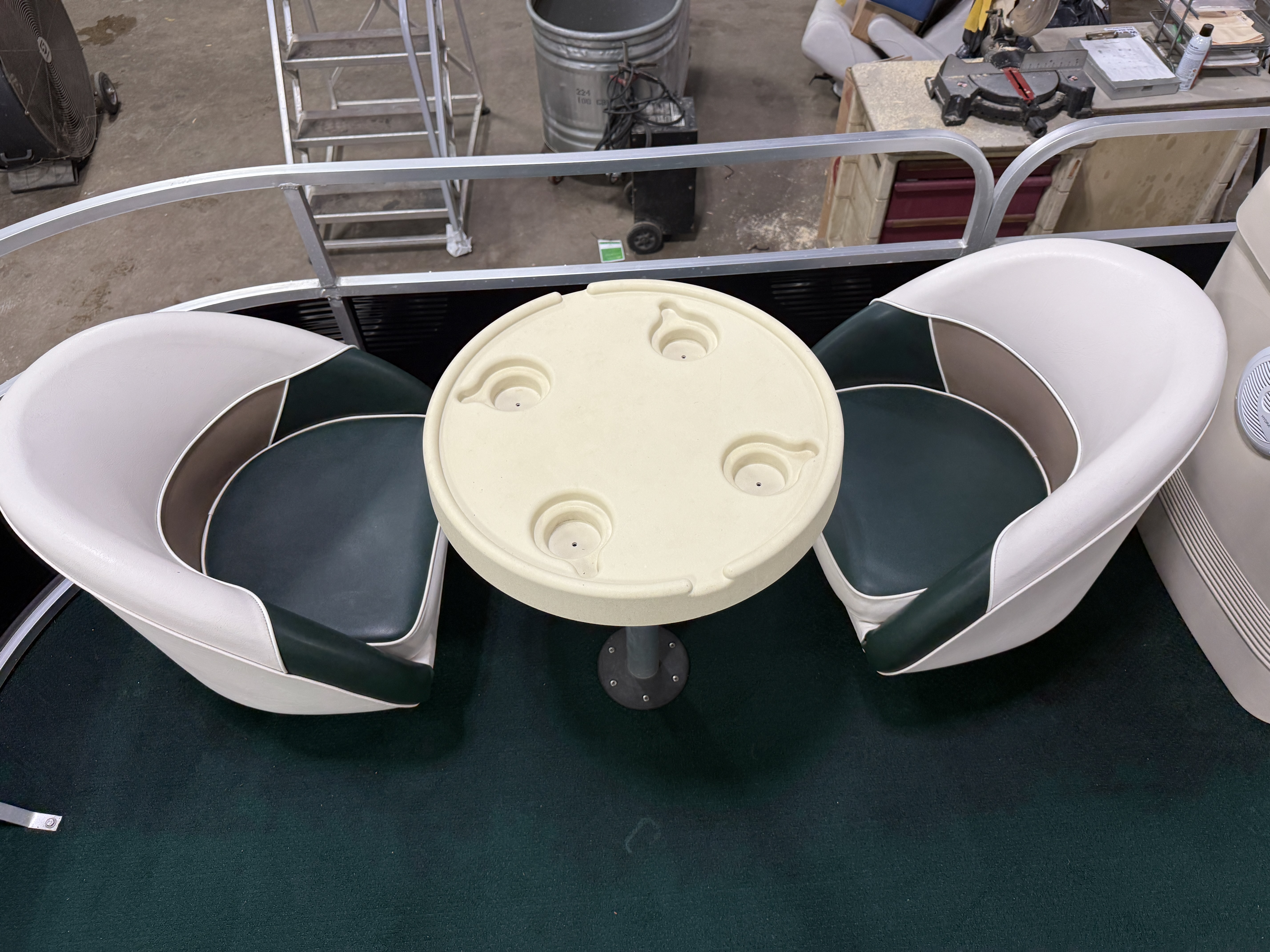 Front Starboard Side Duel Chairs w/Table, Front Portside Bench Seating With