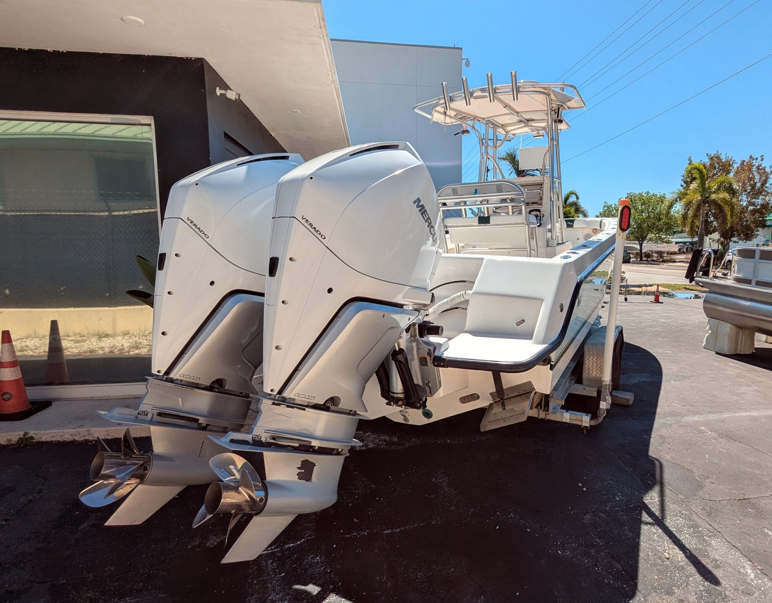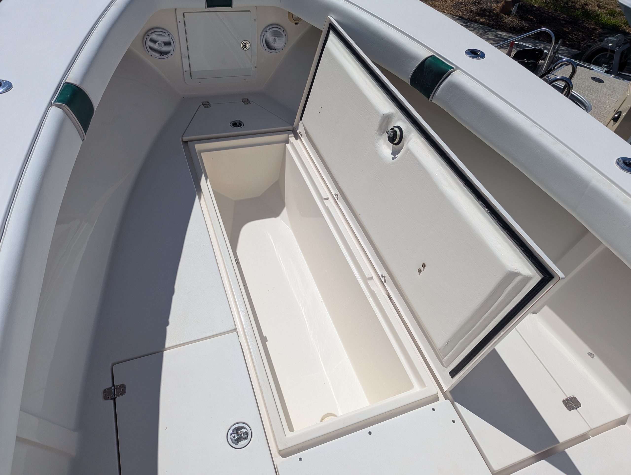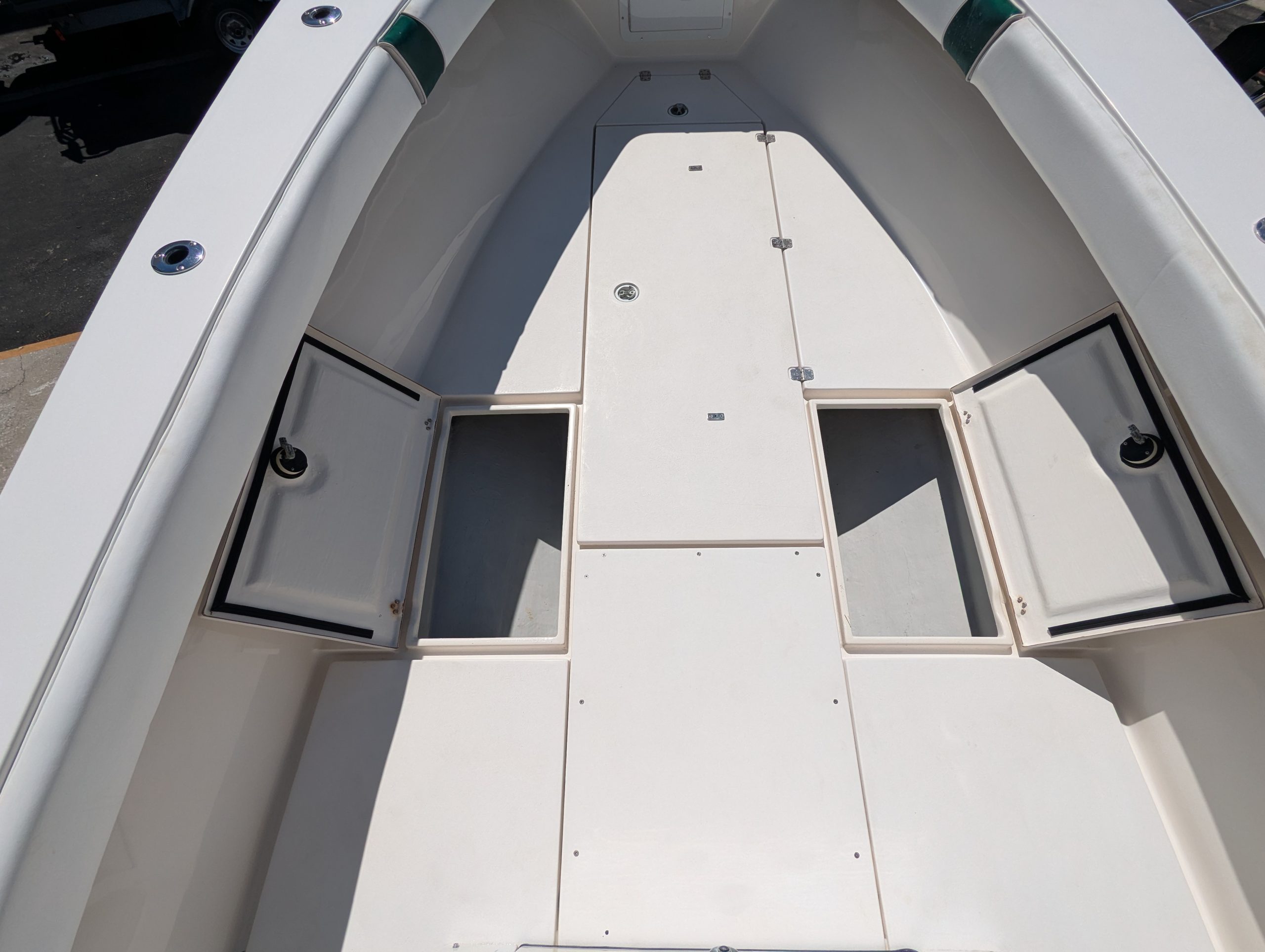 Built for serious offshore performance, this vessel delivers a fast, stable ride with precise handling in all conditions. Angler-focused features include a 50-gallon transom livewell, optional 60-gallon in-deck well, and multiple large fish boxes for maximum capacity. The 360-degree cockpit offers high gunnels, gunnel rod storage, and a spacious forward-entry console, while advanced construction with Divinycell coring and PVC foam ensures strength, durability, and lightweight performance.