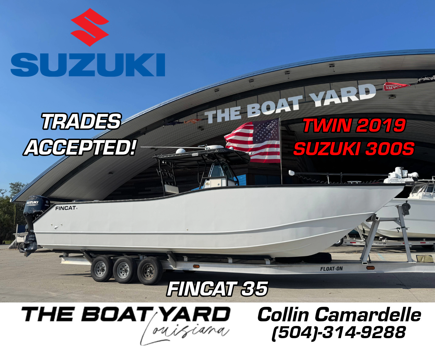 Experience power and performance with this 2005 FinCat 35, freshly repowered with twin 2019 Suzuki 300s for reliability and speed. This offshore beast delivers a smooth, dry ride with plenty of deck space for fishing or cruising.