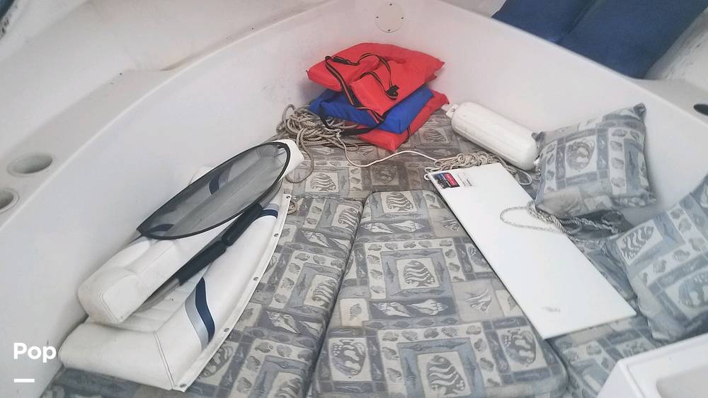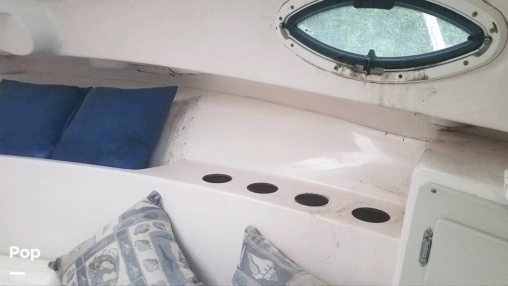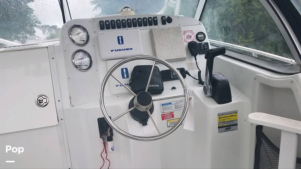 The versatile layout of this boat is great with a cabin, head and galley for overnights and family beach trips. Fish boxes, rocket launchers, radar, cockpit bolsters, and a cushioned aft bench seat for evening harbor cruising.