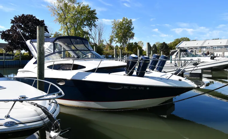 Freshwater / Great Lakes boat since new this vessel features Twin Volvo-Penta 5.7-litre 320-hp Gas Engine's with Volvo-Penta Duo-Prop Sterndrives and 580 original hours. Notable features include but are not limited to the following: Air-Conditioning & Heat, Head (Vacuflush) w/Vanity/Sink/Shower, Windlass-Anchor w/Forward Pedal-Controls, Kohler 5kw Generator (450-hrs), Garmin Color / TouchScreen Radar w/GPS/Chartplotter, Premium Sound System w/AMP/Subwoofer, Cockpit Wet Bar w/Sink/Beverage Refrigerator, Sea-Dek Throughout Cockpit / Swim-Platform, Full Canvas Enclosure, and MUCH more!