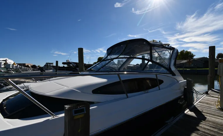 Freshwater / Great Lakes boat since new this vessel features Twin Volvo-Penta 5.7-litre 320-hp Gas Engine's with Volvo-Penta Duo-Prop Sterndrives and 580 original hours. Notable features include but are not limited to the following: Air-Conditioning & Heat, Head (Vacuflush) w/Vanity/Sink/Shower, Windlass-Anchor w/Forward Pedal-Controls, Kohler 5kw Generator (450-hrs), Garmin Color / TouchScreen Radar w/GPS/Chartplotter, Premium Sound System w/AMP/Subwoofer, Cockpit Wet Bar w/Sink/Beverage Refrigerator, Sea-Dek Throughout Cockpit / Swim-Platform, Full Canvas Enclosure, and MUCH more!