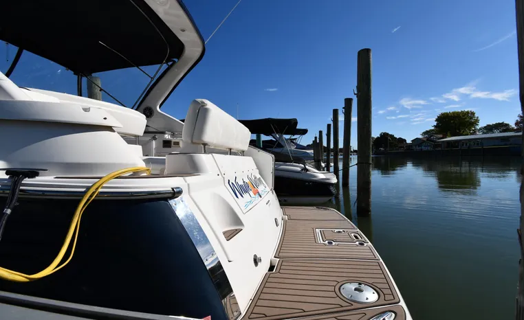 Freshwater / Great Lakes boat since new this vessel features Twin Volvo-Penta 5.7-litre 320-hp Gas Engine's with Volvo-Penta Duo-Prop Sterndrives and 580 original hours. Notable features include but are not limited to the following: Air-Conditioning & Heat, Head (Vacuflush) w/Vanity/Sink/Shower, Windlass-Anchor w/Forward Pedal-Controls, Kohler 5kw Generator (450-hrs), Garmin Color / TouchScreen Radar w/GPS/Chartplotter, Premium Sound System w/AMP/Subwoofer, Cockpit Wet Bar w/Sink/Beverage Refrigerator, Sea-Dek Throughout Cockpit / Swim-Platform, Full Canvas Enclosure, and MUCH more!