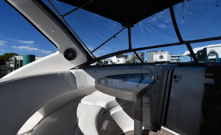 Freshwater / Great Lakes boat since new this vessel features Twin Volvo-Penta 5.7-litre 320-hp Gas Engine's with Volvo-Penta Duo-Prop Sterndrives and 580 original hours. Notable features include but are not limited to the following: Air-Conditioning & Heat, Head (Vacuflush) w/Vanity/Sink/Shower, Windlass-Anchor w/Forward Pedal-Controls, Kohler 5kw Generator (450-hrs), Garmin Color / TouchScreen Radar w/GPS/Chartplotter, Premium Sound System w/AMP/Subwoofer, Cockpit Wet Bar w/Sink/Beverage Refrigerator, Sea-Dek Throughout Cockpit / Swim-Platform, Full Canvas Enclosure, and MUCH more!