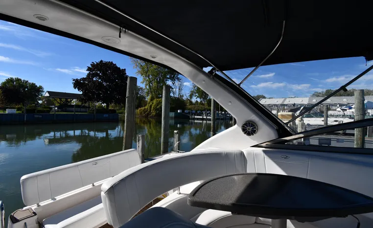Freshwater / Great Lakes boat since new this vessel features Twin Volvo-Penta 5.7-litre 320-hp Gas Engine's with Volvo-Penta Duo-Prop Sterndrives and 580 original hours. Notable features include but are not limited to the following: Air-Conditioning & Heat, Head (Vacuflush) w/Vanity/Sink/Shower, Windlass-Anchor w/Forward Pedal-Controls, Kohler 5kw Generator (450-hrs), Garmin Color / TouchScreen Radar w/GPS/Chartplotter, Premium Sound System w/AMP/Subwoofer, Cockpit Wet Bar w/Sink/Beverage Refrigerator, Sea-Dek Throughout Cockpit / Swim-Platform, Full Canvas Enclosure, and MUCH more!