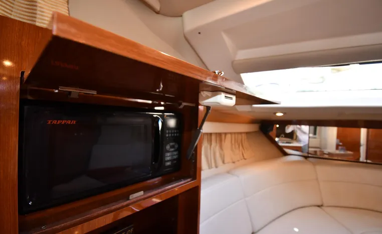 Freshwater / Great Lakes boat since new this vessel features Twin Volvo-Penta 5.7-litre 320-hp Gas Engine's with Volvo-Penta Duo-Prop Sterndrives and 580 original hours. Notable features include but are not limited to the following: Air-Conditioning & Heat, Head (Vacuflush) w/Vanity/Sink/Shower, Windlass-Anchor w/Forward Pedal-Controls, Kohler 5kw Generator (450-hrs), Garmin Color / TouchScreen Radar w/GPS/Chartplotter, Premium Sound System w/AMP/Subwoofer, Cockpit Wet Bar w/Sink/Beverage Refrigerator, Sea-Dek Throughout Cockpit / Swim-Platform, Full Canvas Enclosure, and MUCH more!