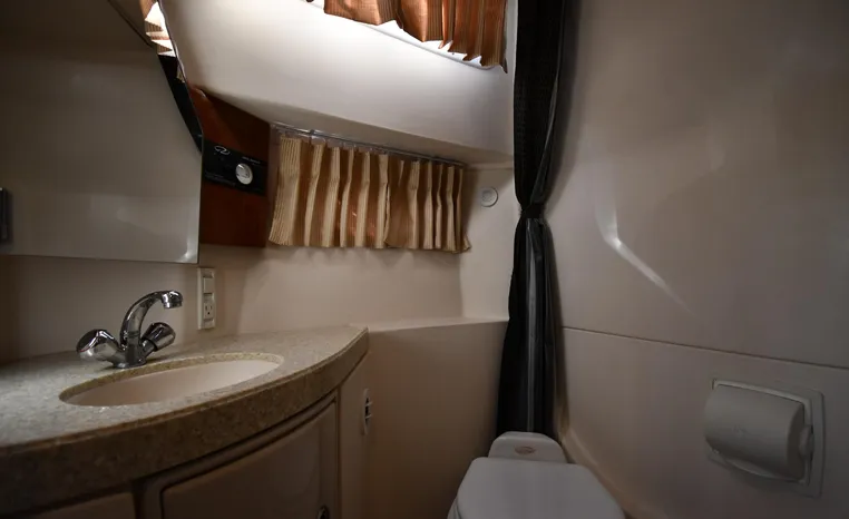 Freshwater / Great Lakes boat since new this vessel features Twin Volvo-Penta 5.7-litre 320-hp Gas Engine's with Volvo-Penta Duo-Prop Sterndrives and 580 original hours. Notable features include but are not limited to the following: Air-Conditioning & Heat, Head (Vacuflush) w/Vanity/Sink/Shower, Windlass-Anchor w/Forward Pedal-Controls, Kohler 5kw Generator (450-hrs), Garmin Color / TouchScreen Radar w/GPS/Chartplotter, Premium Sound System w/AMP/Subwoofer, Cockpit Wet Bar w/Sink/Beverage Refrigerator, Sea-Dek Throughout Cockpit / Swim-Platform, Full Canvas Enclosure, and MUCH more!