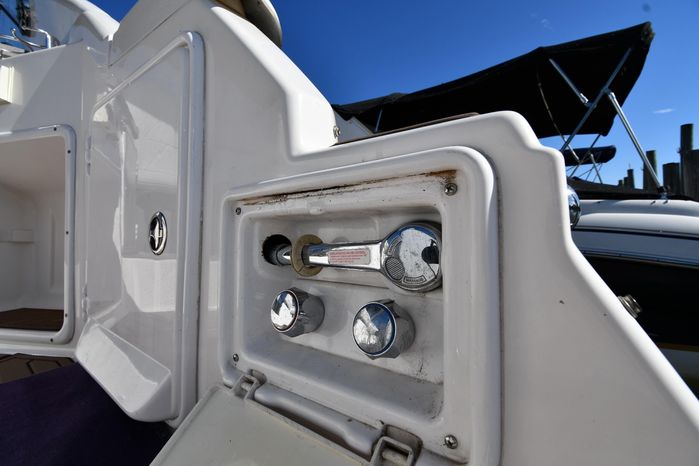 Freshwater / Great Lakes boat since new this vessel features Twin Volvo-Penta 5.7-litre 320-hp Gas Engine's with Volvo-Penta Duo-Prop Sterndrives and 580 original hours. Notable features include but are not limited to the following: Air-Conditioning & Heat, Head (Vacuflush) w/Vanity/Sink/Shower, Windlass-Anchor w/Forward Pedal-Controls, Kohler 5kw Generator (450-hrs), Garmin Color / TouchScreen Radar w/GPS/Chartplotter, Premium Sound System w/AMP/Subwoofer, Cockpit Wet Bar w/Sink/Beverage Refrigerator, Sea-Dek Throughout Cockpit / Swim-Platform, Full Canvas Enclosure, and MUCH more!