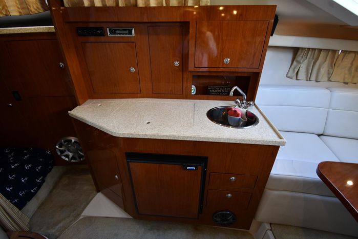 Freshwater / Great Lakes boat since new this vessel features Twin Volvo-Penta 5.7-litre 320-hp Gas Engine's with Volvo-Penta Duo-Prop Sterndrives and 580 original hours. Notable features include but are not limited to the following: Air-Conditioning & Heat, Head (Vacuflush) w/Vanity/Sink/Shower, Windlass-Anchor w/Forward Pedal-Controls, Kohler 5kw Generator (450-hrs), Garmin Color / TouchScreen Radar w/GPS/Chartplotter, Premium Sound System w/AMP/Subwoofer, Cockpit Wet Bar w/Sink/Beverage Refrigerator, Sea-Dek Throughout Cockpit / Swim-Platform, Full Canvas Enclosure, and MUCH more!