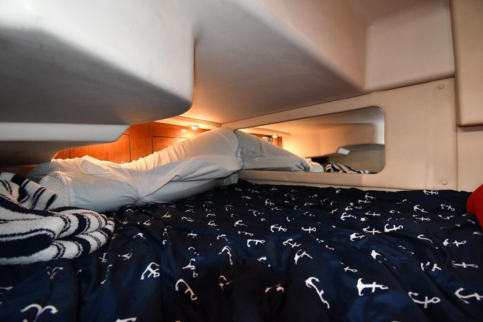 The dramatic, flowing silhouette of the Regal 3060 Window Express is clearly of the Regal Yacht bloodline. Unmistakable are the rake of the bow and the graceful aft sweep of the arch. Large, port and starboard, cat-eye windows and sharply angled windows forward pour an abundance of natural light into the salon. The interior, so bright and airy, is also spacious. The mid-cabin (usually reserved for children or storage), is large enough to be the master stateroom.