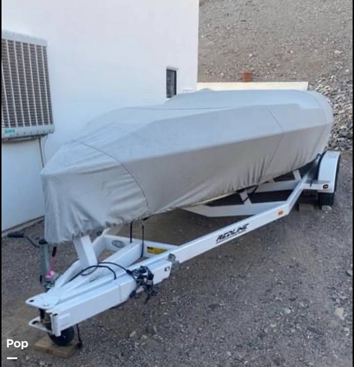This head-turner has a double axel steel trailer and a full boat cover for storage.
