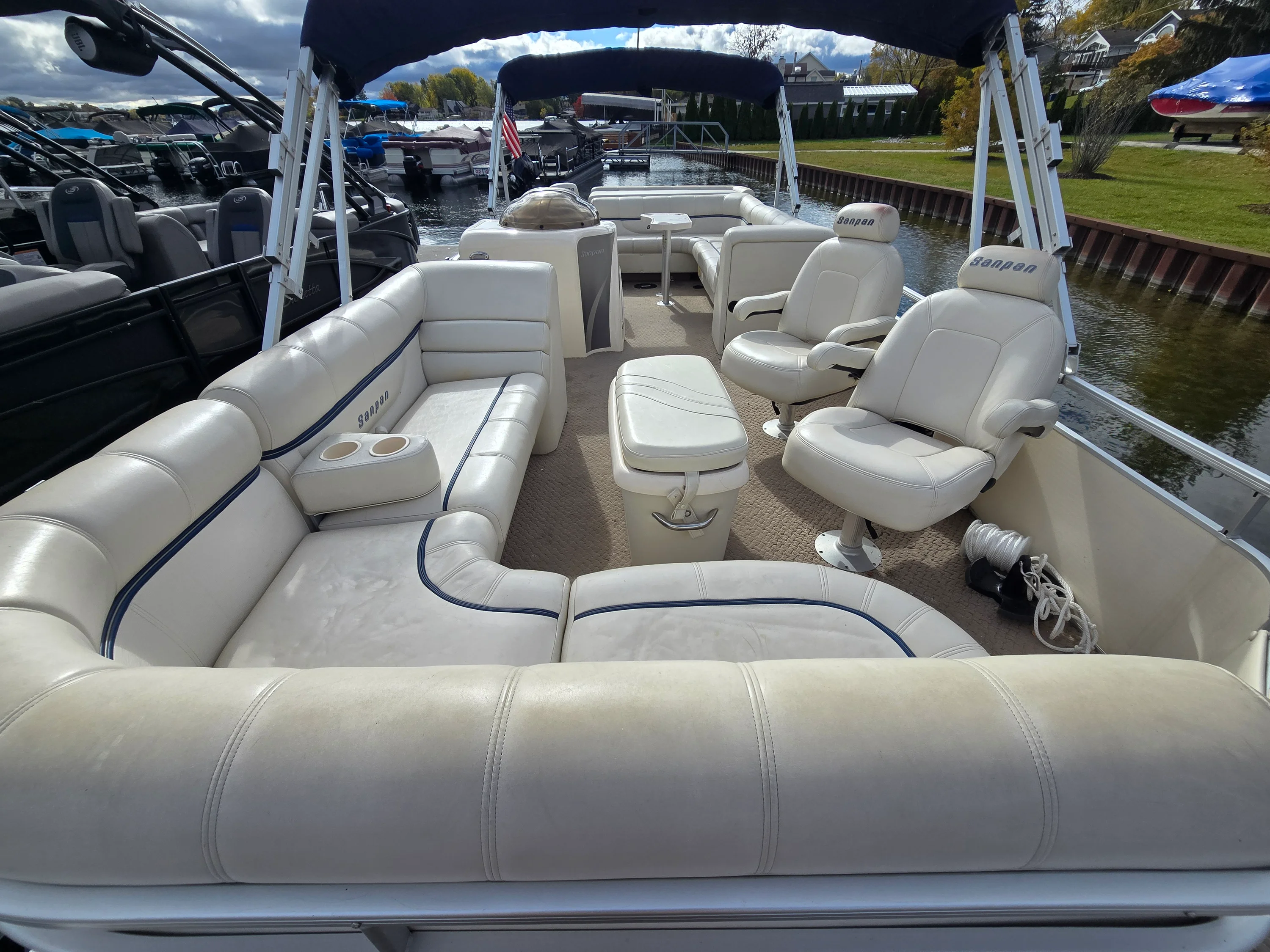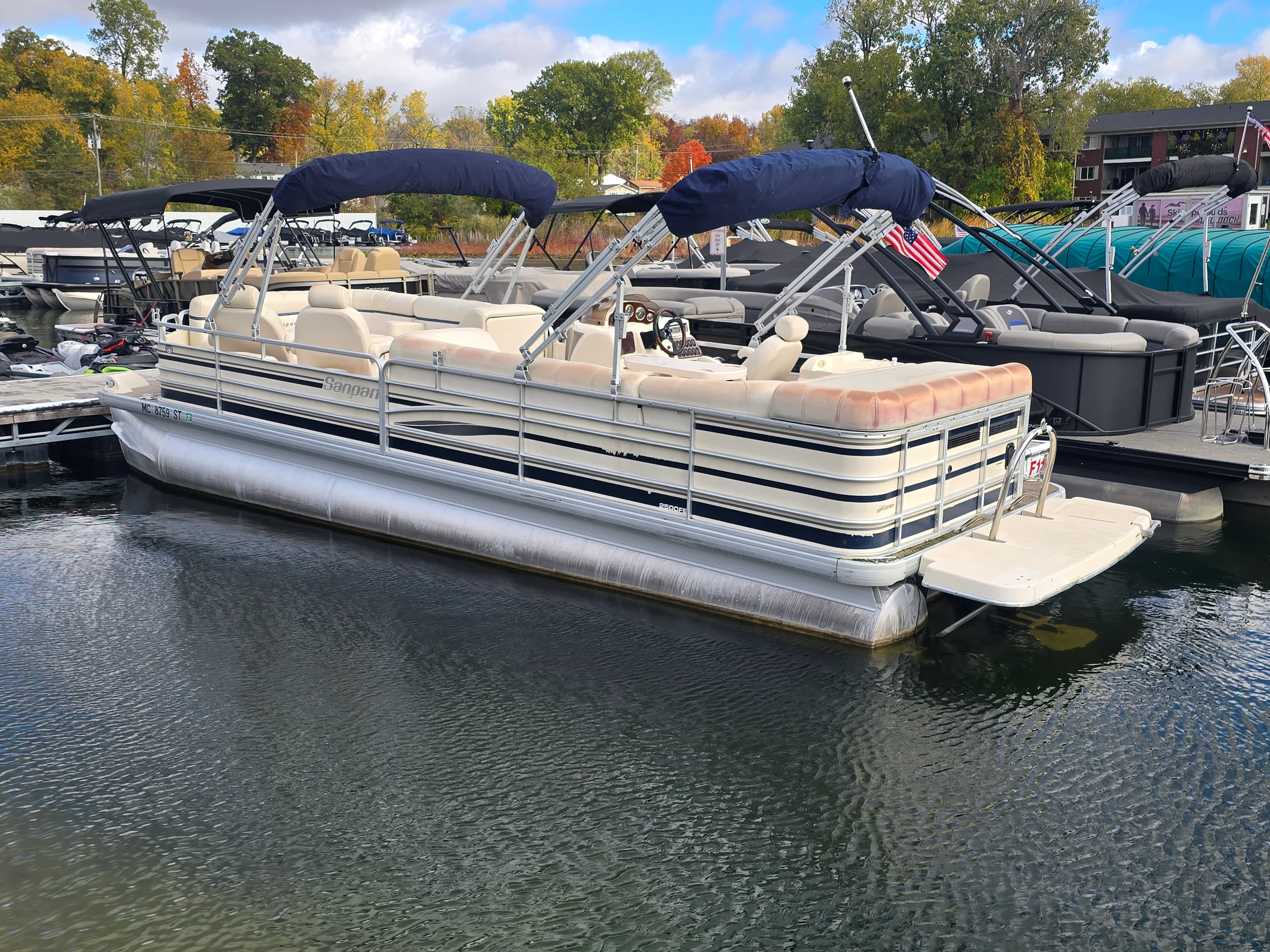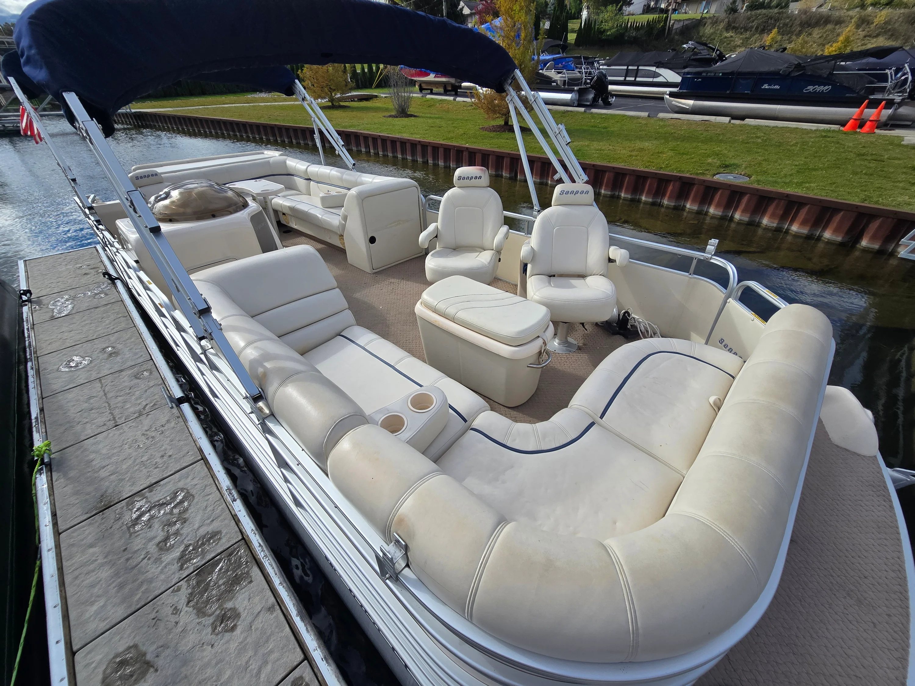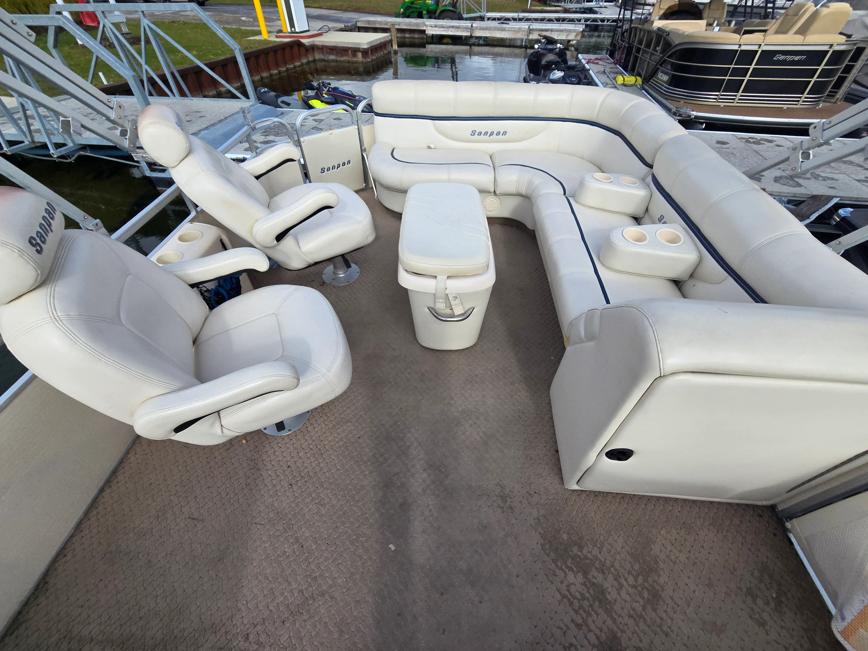 This 2005 SanPan 2500FE Tri-Toon is the perfect blend of power, comfort, and value. Powered by a Mercury 4.3L MPI inboard/outboard, this Tri-Toon delivers strong performance that sets it apart from typical pontoons — and it’s priced under $20K! Stored indoors in a heated facility every winter, this boat’s exceptional condition speaks for itself. Features include dual Biminis, a Lowrance depth and fish finder, Jensen CD player with Sirius XM, and a custom dual-battery setup with switch for peace of mind on the water. The owner also added a large ottoman with built-in cooler, perfect for entertaining and long lake days. This is your chance to own a clean, well-cared-for Tri-Toon with a big engine — a rare find in this price range.