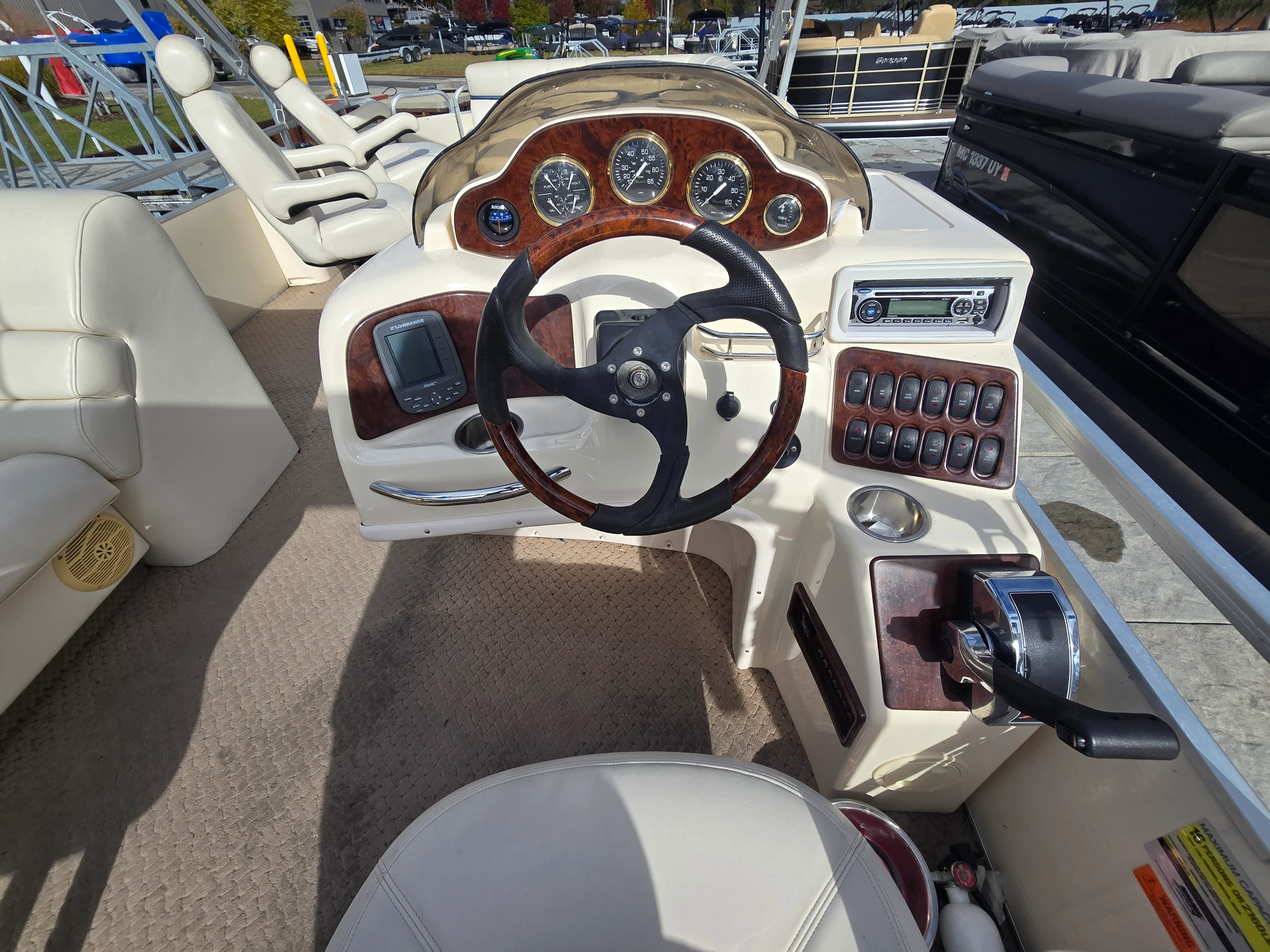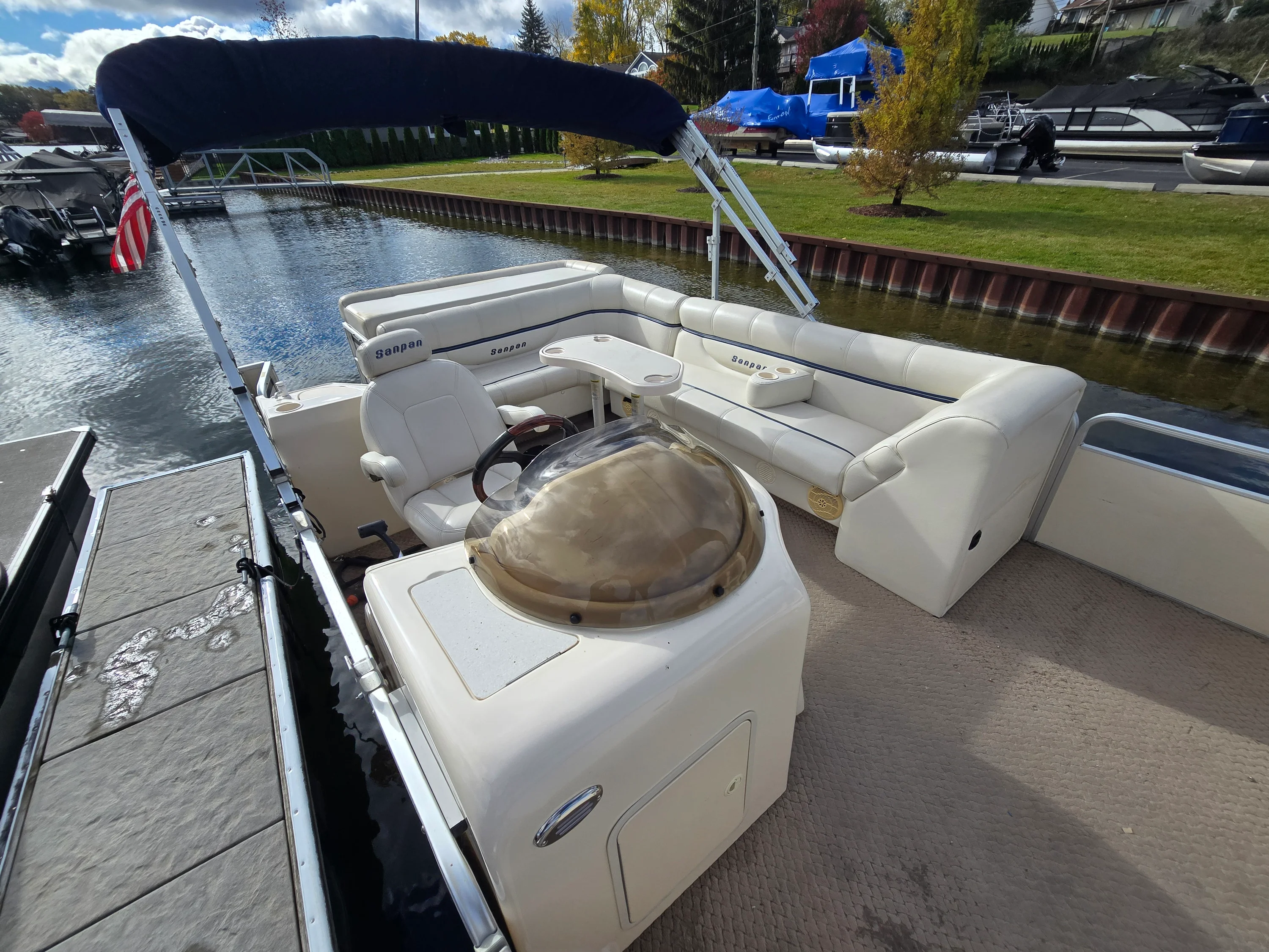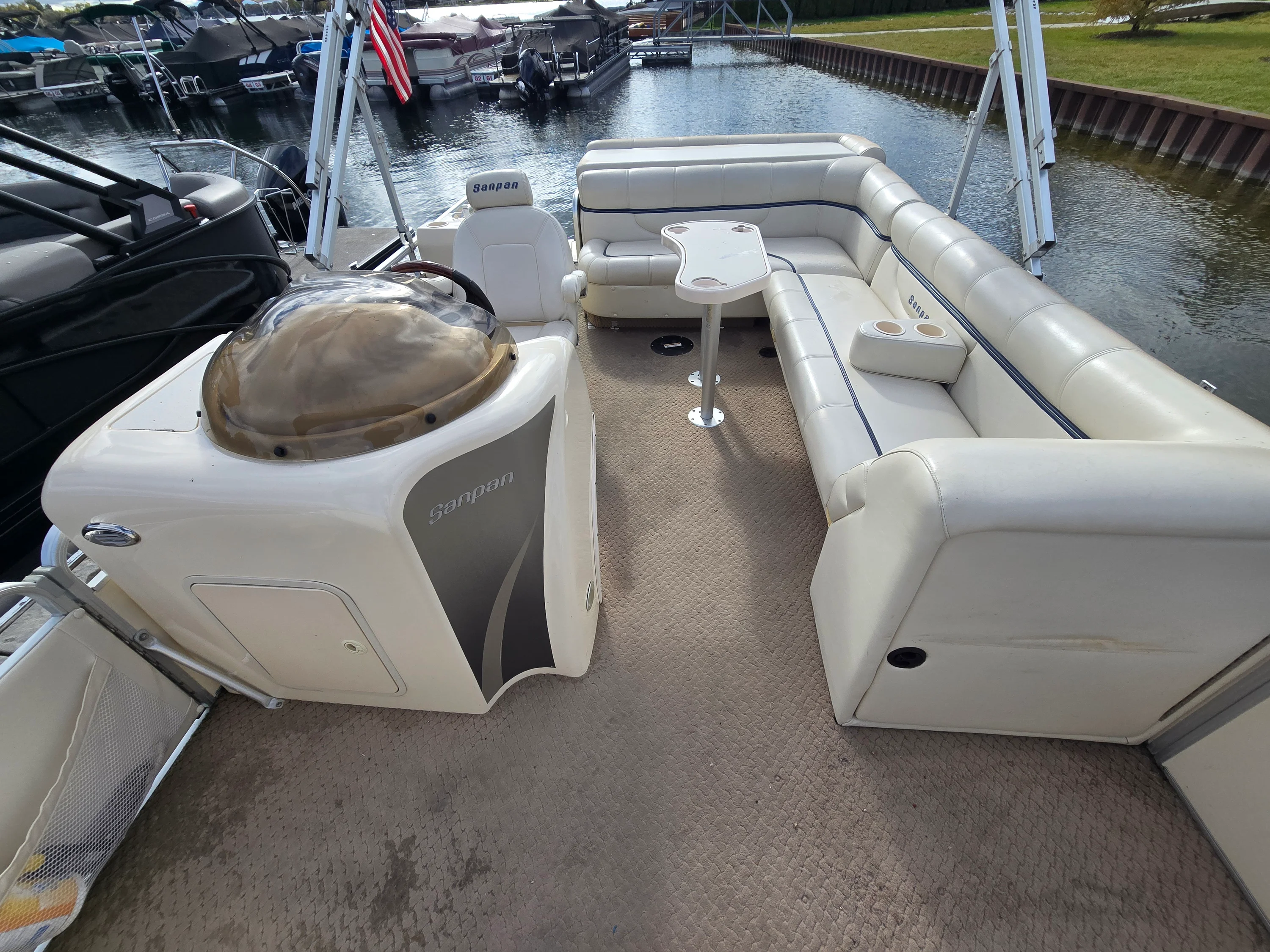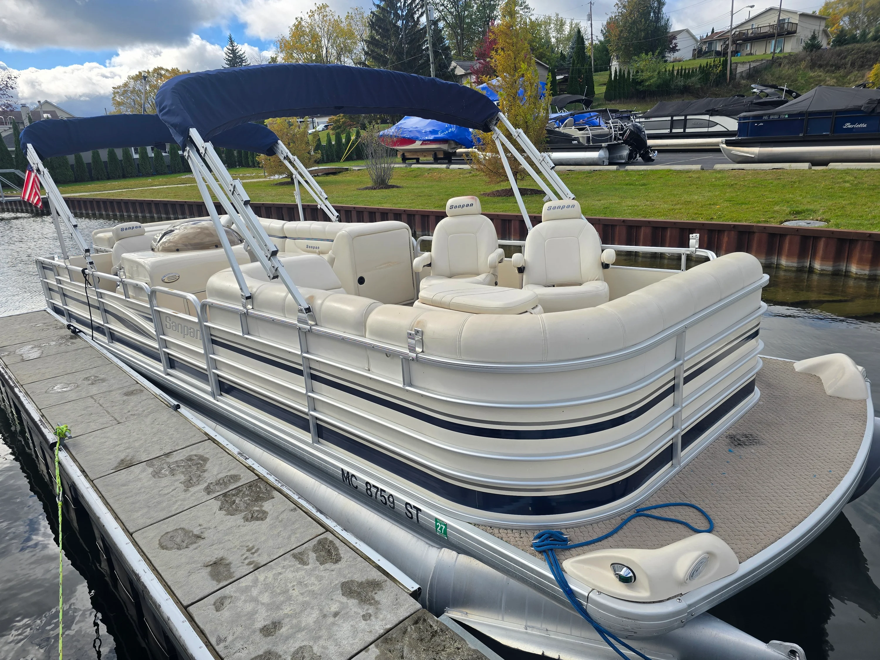 This 2005 SanPan 2500FE Tri-Toon is the perfect blend of power, comfort, and value. Powered by a Mercury 4.3L MPI inboard/outboard, this Tri-Toon delivers strong performance that sets it apart from typical pontoons — and it’s priced under $20K! Stored indoors in a heated facility every winter, this boat’s exceptional condition speaks for itself. Features include dual Biminis, a Lowrance depth and fish finder, Jensen CD player with Sirius XM, and a custom dual-battery setup with switch for peace of mind on the water. The owner also added a large ottoman with built-in cooler, perfect for entertaining and long lake days. This is your chance to own a clean, well-cared-for Tri-Toon with a big engine — a rare find in this price range.