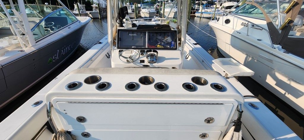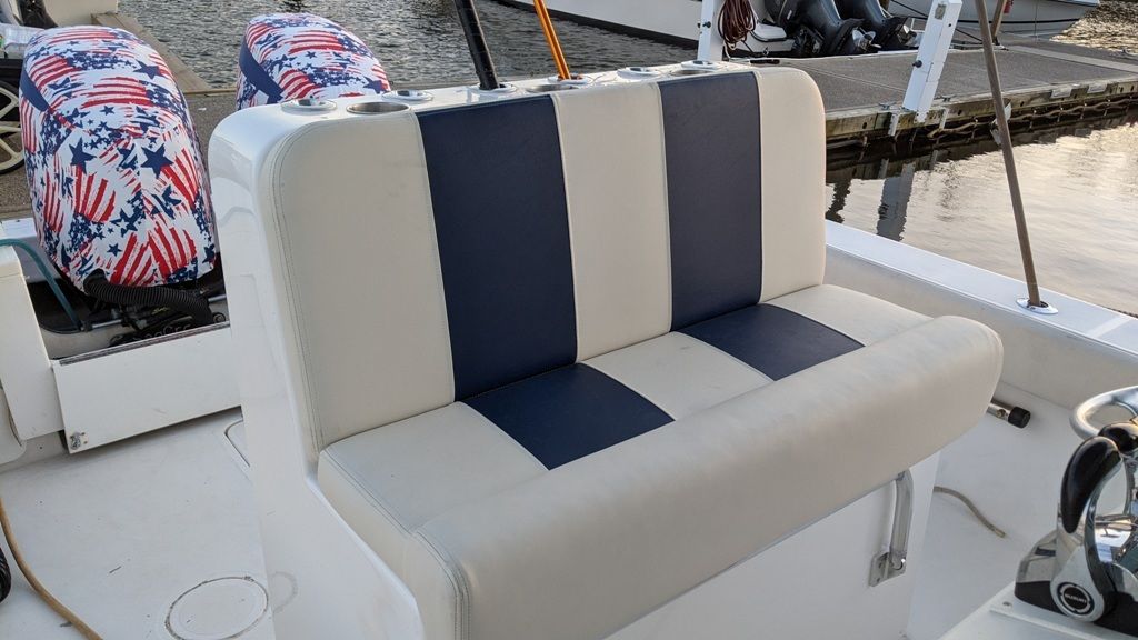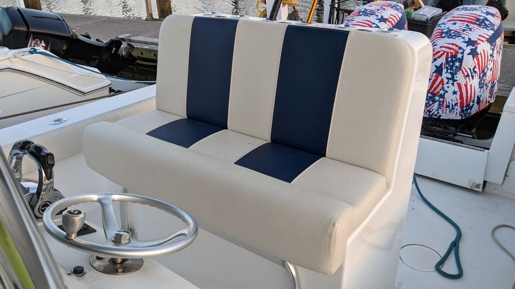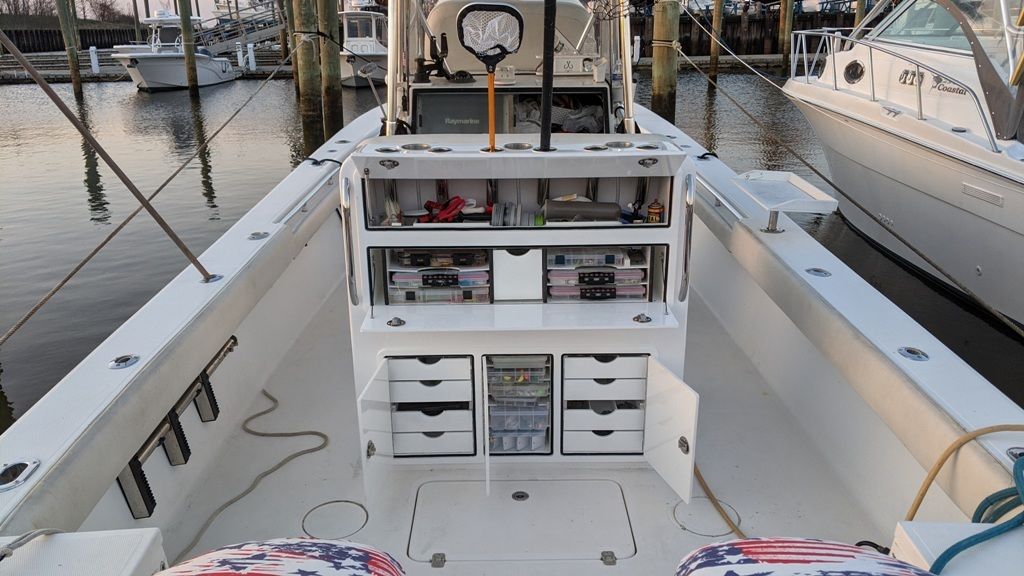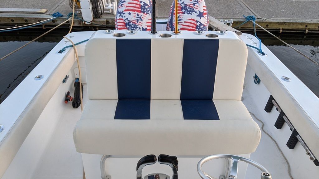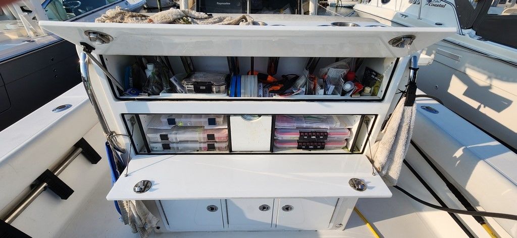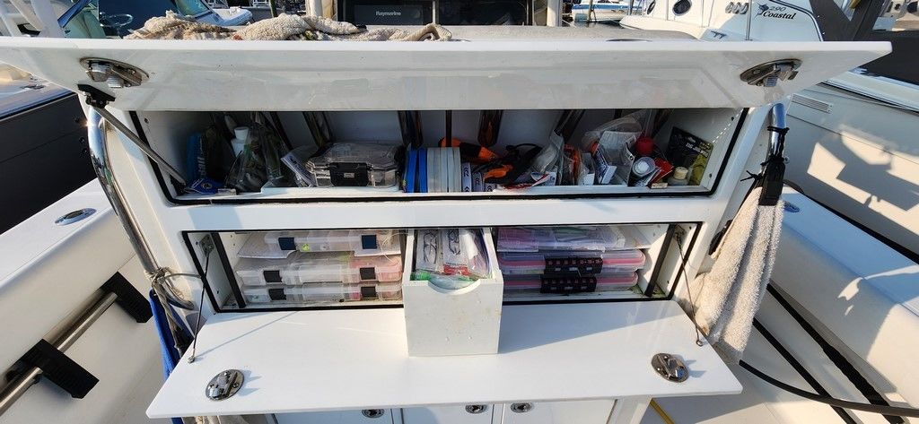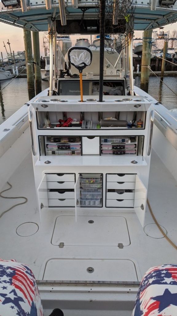 2021 Upgraded boat with NEW Custom Helm seat and Tackle Center. Amazing upgrade with loads of space for all your tackle storage needs. A fold down rigging table, drawers and plenty of space for Plano boxes make the rear of the seat the most useful area on the boat. 6 rod holders with 3 cup holders on top with grab handles on the back side. The fishability of the boat improved greatly with this addition and was well worth the investment.