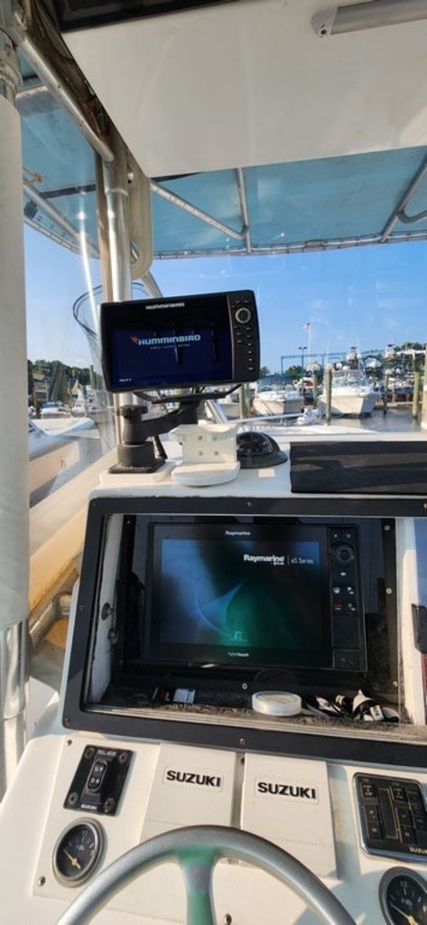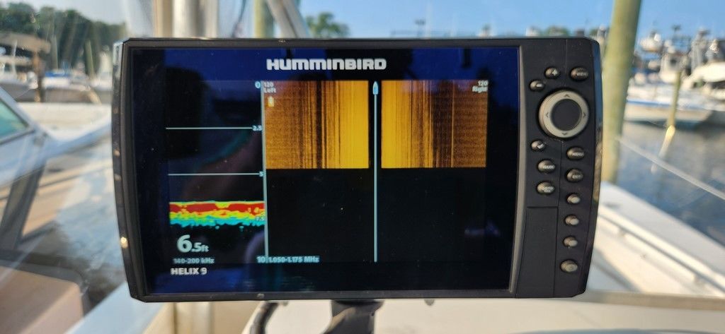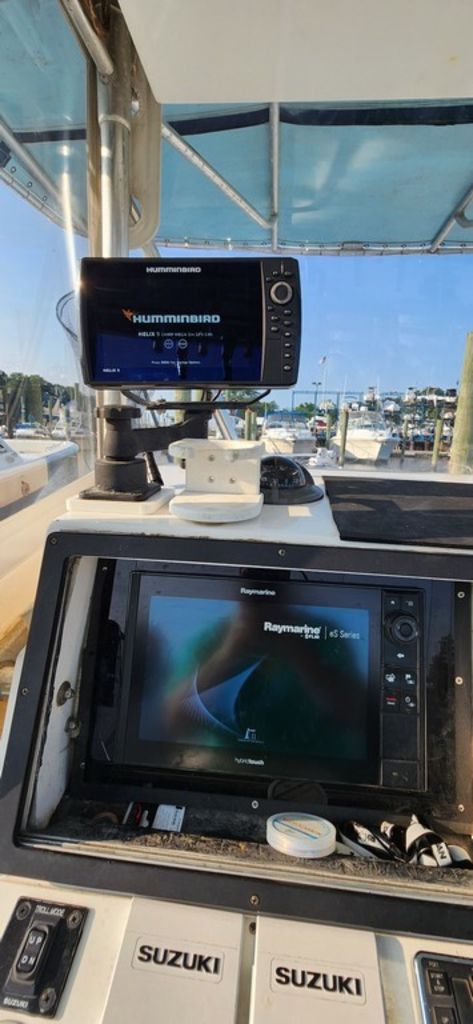 Main Electronics suite is Raymarine Hybrid Touch 12 inch screen with 24mi Radar. Humminbird 9in Chirp is secondary machine with sidescan functionality. 1kw Transducer for Raymarine System