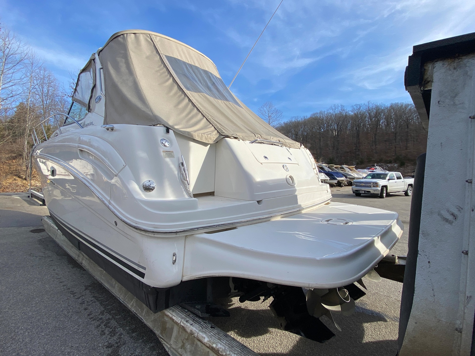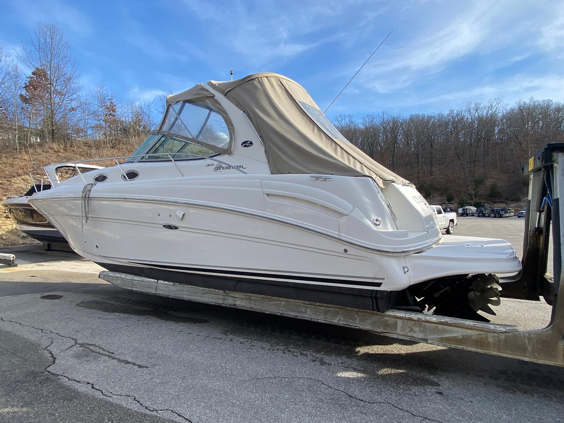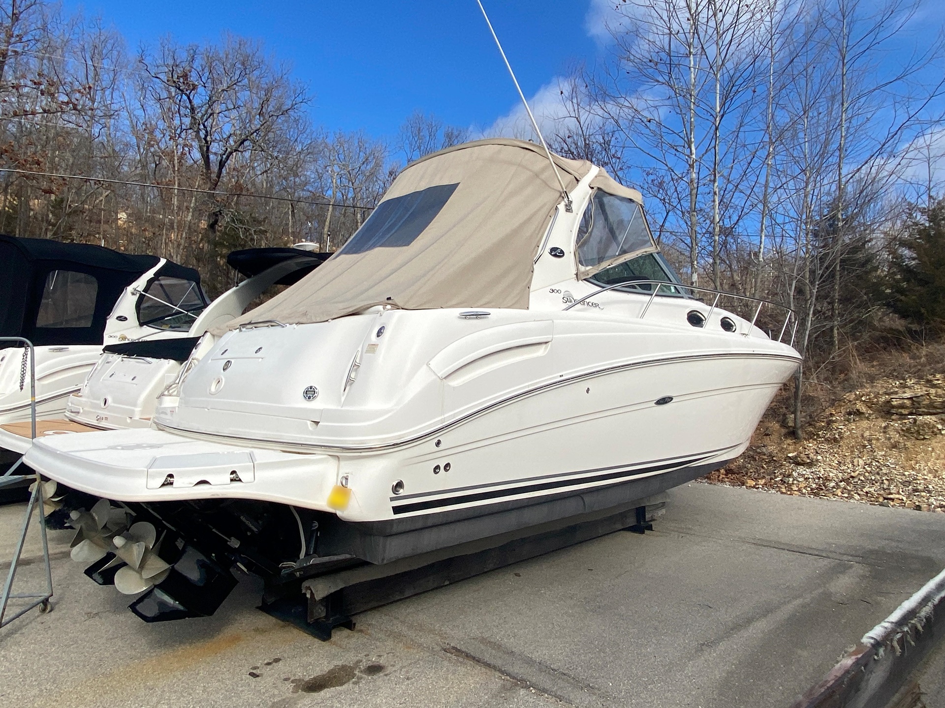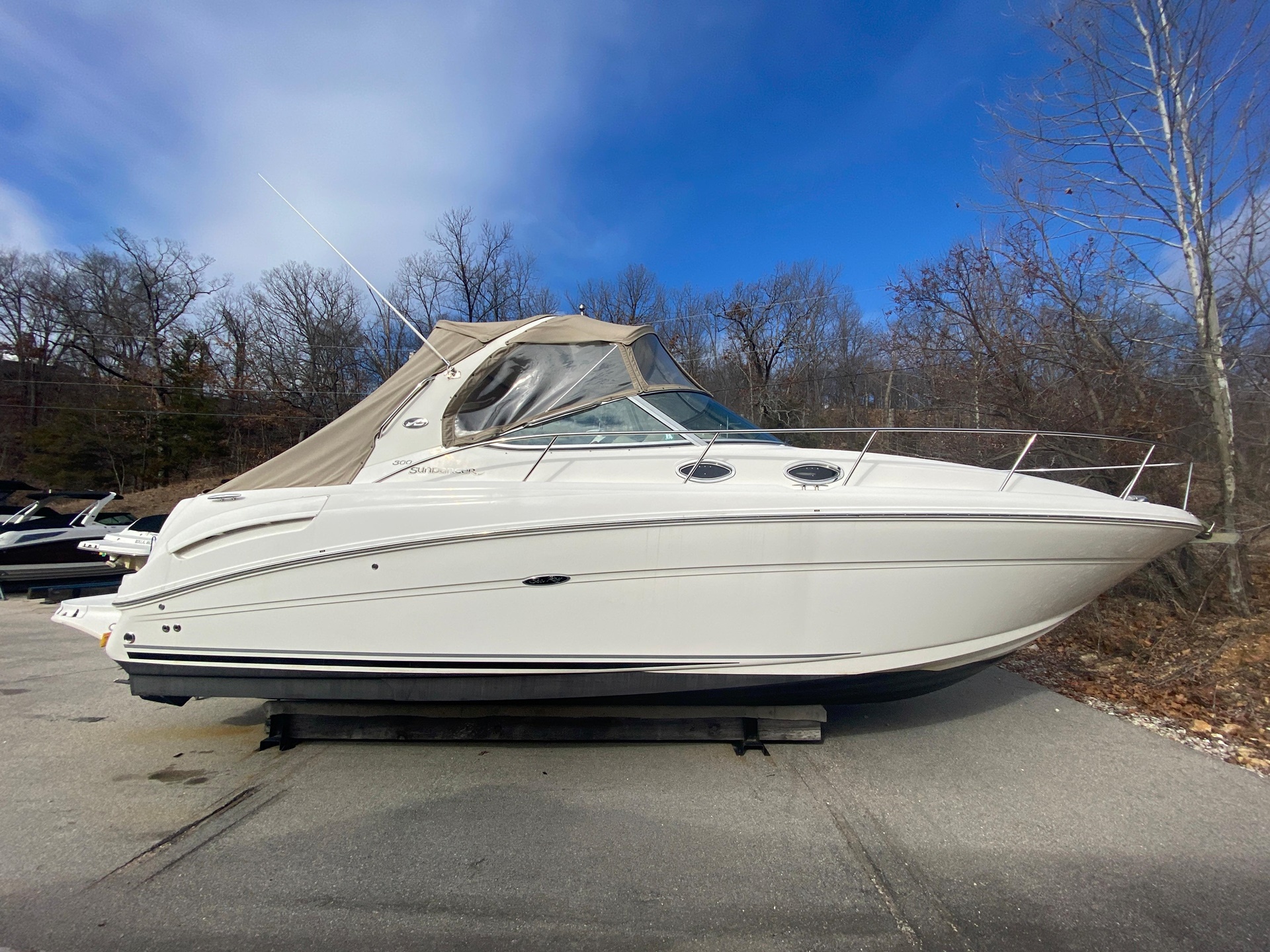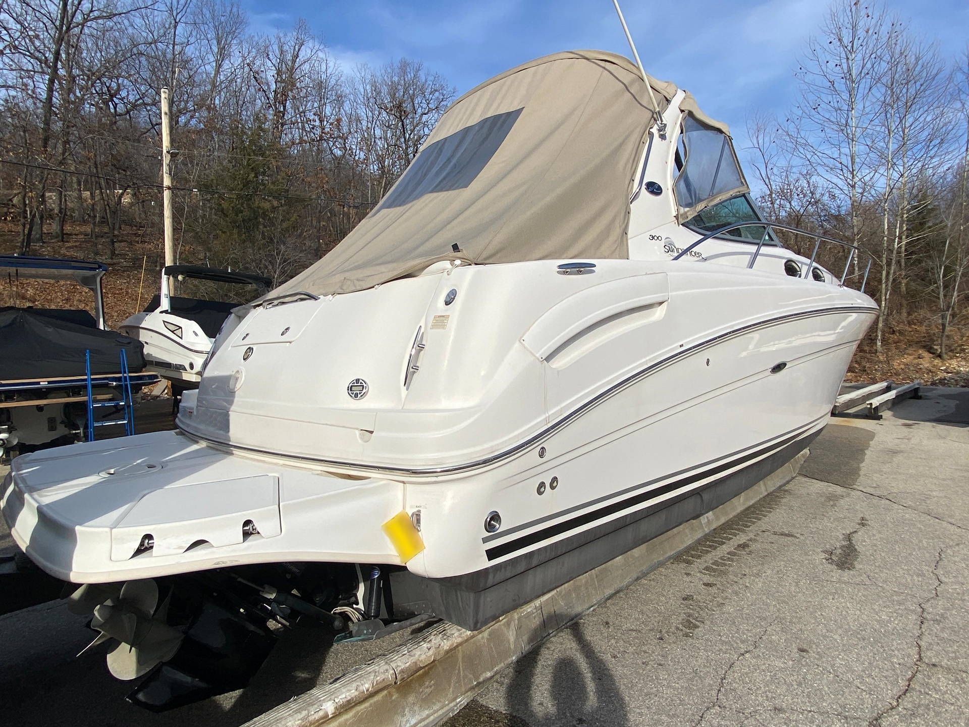 This 2005 Sea Ray 300 Sundancer is powered by twin 300 HP MerCruiser 350 MAG MPI Bravo 3 drives, with 771 hours on the motors. Meticulously maintained by certified MerCruiser technicians, this one-owner freshwater boat is in excellent condition.