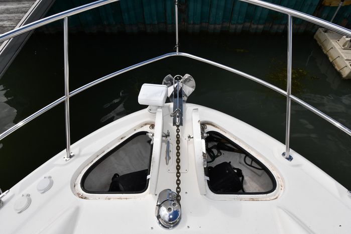 Freshwater / Great Lakes boat since new this vessel features Twin Cummins 480CE 480-hp Diesel Engine's with 950 original hours. Notable features include but are not limited to the following: Air-Conditioning & Heat (4-Units), (2) Heads (Vacuflush) w/Vanity/Sink/Stall-Shower's, Central Vacuum System, Washer/Dryer, Canvas Carpet Runners, Onan 9.0kw Generator, Windlass Anchor w/Forward Pedal Controls, Cockpit AC/Heat, Bow Thruster, Raymarine Electronics (VHF Marine Radio, Sum-Log w/Depth/Speed/Trip-Log, C120 Radar w/GPS/Chartplotter, Autoplotter), Cockpit Wet Bar w/Sink/Refrigerator, and MUCH more!