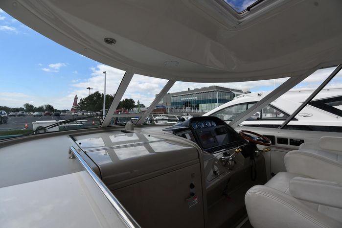 Freshwater / Great Lakes boat since new this vessel features Twin Cummins 480CE 480-hp Diesel Engine's with 950 original hours. Notable features include but are not limited to the following: Air-Conditioning & Heat (4-Units), (2) Heads (Vacuflush) w/Vanity/Sink/Stall-Shower's, Central Vacuum System, Washer/Dryer, Canvas Carpet Runners, Onan 9.0kw Generator, Windlass Anchor w/Forward Pedal Controls, Cockpit AC/Heat, Bow Thruster, Raymarine Electronics (VHF Marine Radio, Sum-Log w/Depth/Speed/Trip-Log, C120 Radar w/GPS/Chartplotter, Autoplotter), Cockpit Wet Bar w/Sink/Refrigerator, and MUCH more!