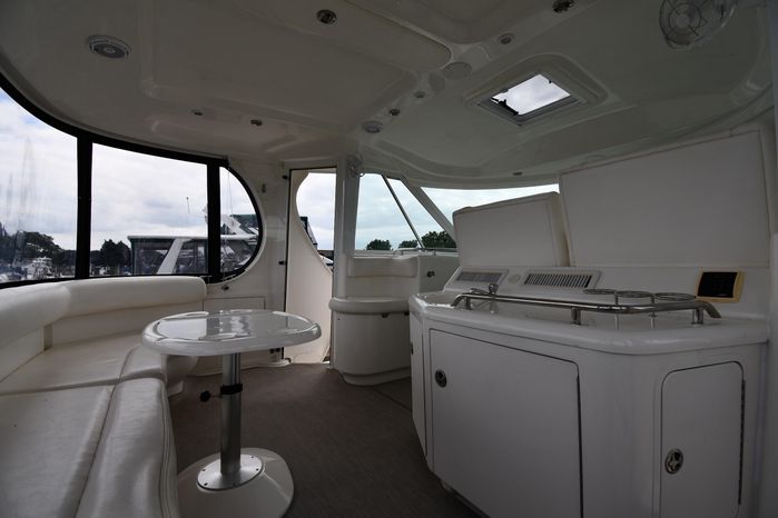 Freshwater / Great Lakes boat since new this vessel features Twin Cummins 480CE 480-hp Diesel Engine's with 950 original hours. Notable features include but are not limited to the following: Air-Conditioning & Heat (4-Units), (2) Heads (Vacuflush) w/Vanity/Sink/Stall-Shower's, Central Vacuum System, Washer/Dryer, Canvas Carpet Runners, Onan 9.0kw Generator, Windlass Anchor w/Forward Pedal Controls, Cockpit AC/Heat, Bow Thruster, Raymarine Electronics (VHF Marine Radio, Sum-Log w/Depth/Speed/Trip-Log, C120 Radar w/GPS/Chartplotter, Autoplotter), Cockpit Wet Bar w/Sink/Refrigerator, and MUCH more!