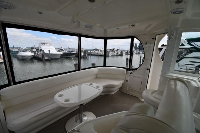Freshwater / Great Lakes boat since new this vessel features Twin Cummins 480CE 480-hp Diesel Engine's with 950 original hours. Notable features include but are not limited to the following: Air-Conditioning & Heat (4-Units), (2) Heads (Vacuflush) w/Vanity/Sink/Stall-Shower's, Central Vacuum System, Washer/Dryer, Canvas Carpet Runners, Onan 9.0kw Generator, Windlass Anchor w/Forward Pedal Controls, Cockpit AC/Heat, Bow Thruster, Raymarine Electronics (VHF Marine Radio, Sum-Log w/Depth/Speed/Trip-Log, C120 Radar w/GPS/Chartplotter, Autoplotter), Cockpit Wet Bar w/Sink/Refrigerator, and MUCH more!