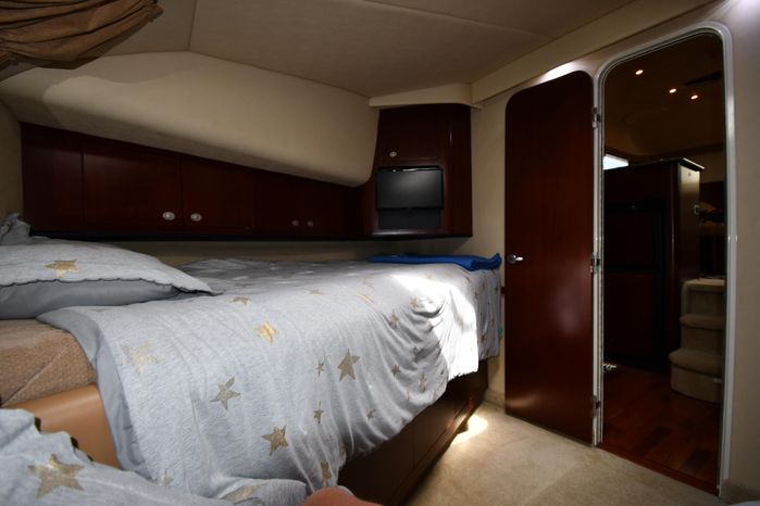 Freshwater / Great Lakes boat since new this vessel features Twin Cummins 480CE 480-hp Diesel Engine's with 950 original hours. Notable features include but are not limited to the following: Air-Conditioning & Heat (4-Units), (2) Heads (Vacuflush) w/Vanity/Sink/Stall-Shower's, Central Vacuum System, Washer/Dryer, Canvas Carpet Runners, Onan 9.0kw Generator, Windlass Anchor w/Forward Pedal Controls, Cockpit AC/Heat, Bow Thruster, Raymarine Electronics (VHF Marine Radio, Sum-Log w/Depth/Speed/Trip-Log, C120 Radar w/GPS/Chartplotter, Autoplotter), Cockpit Wet Bar w/Sink/Refrigerator, and MUCH more!